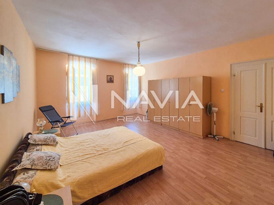 Prodaje se prostran stan u samom centru Obrovca, ukupne površine 87 m². Stan se sastoji od dva hodnika, tri komforne spavaće sobe, kuhinje s blagovaonicom te kupaonice. Stanu pripada i dio dvorišta zgrade.