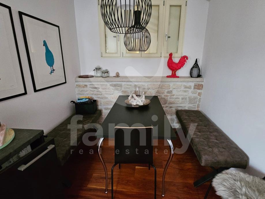 Smještena u srcu Rovinja, ova iznimna nekretnina predstavlja rijetkost na tržištu. Riječ je o dva kata unutar povijesne zgrade iz oko 1700. godine, poznate po svojoj izuzetnoj kvaliteti gradnje. Ukupna površina od približno 196 m² sastoji se od tri stana – jednog prostranog stana od 101 m² te dva manja, svaki po 45 m².