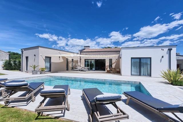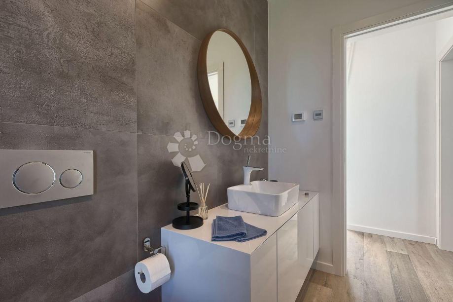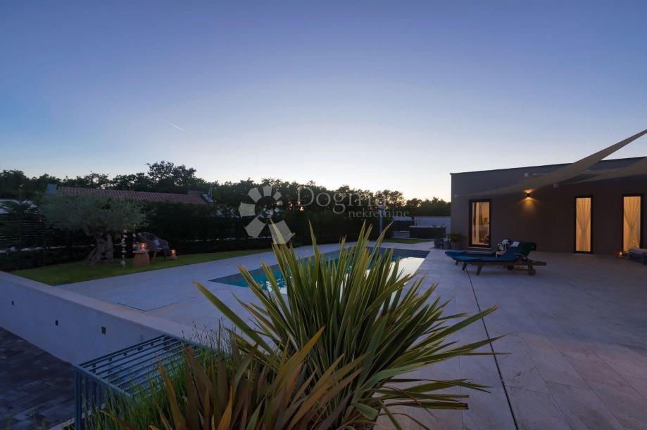 Dobrodošli u raj na zemlji! Ova prekrasna, urbana vila za odmor ima 4 zvjezdice. Sastoji se od dobro opremljene kuhinje, blagavaonice, dnevnog boravka, 3 spavaće sobe, 2 kupaonice, 1 wc-a te velikog bazena u zelenom, privatnom vrtu. U dnevnom boravku nalazi se pomoćni ležaj za dvije osobe. Kuća je suvremeno opremljena za ugodan boravak sa svim potrebnim kućanskim aparatima uključujući perilicu posuđa i rublja, mikrovalnu pećnicu, klima uređaje... Svaki je detalj pomno biran i personaliziran kao npr vanjski roštilj koji je ručni rad, pročišćivač vode, pumpa za punjenje bazena, daljinsko upravljanje kapije itd. Nekretnina ima besplatni Wi Fi, video nadzor, alarmni sistem, punjač za elektro automobile i još puno detalja.Umjesto pergole, postavljena su ekskluzivna jedra koja se po potrebi mogu skidati, vrijedna preko 5000,00 Eura. Na raspolaganju Vam je i luksuzni jacuzzi vrijednosti 16.000,00 Eura.