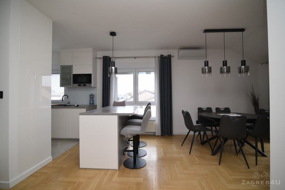 Luksuzan renovirani namješten dvoetažni 4-sobni stan (100 m2) na 3 katu bez lifta, Trešnjevka. Stan se nalazi na odličnoj lokaciji u blizini svih sadrzaja, trgovina, javnog prijevoza.