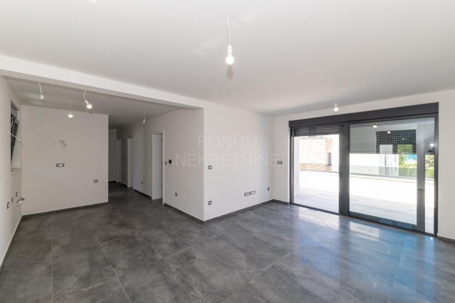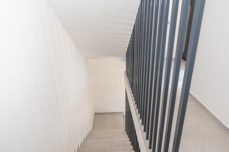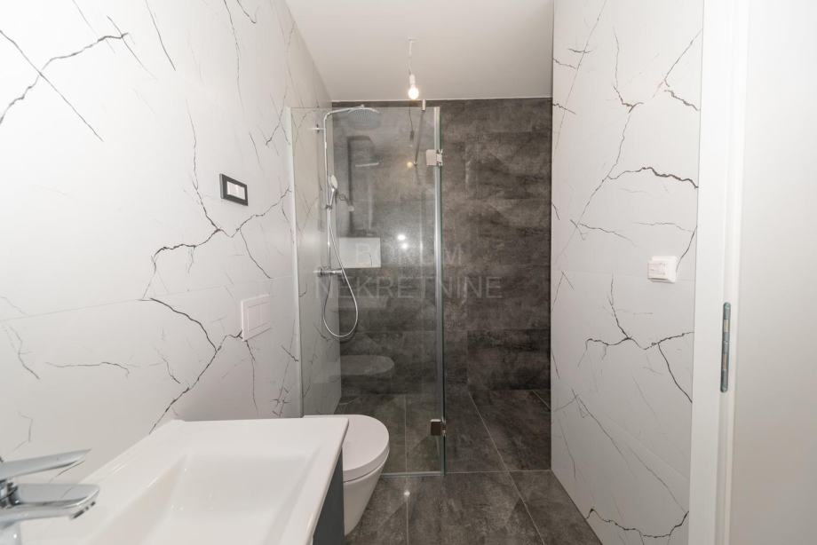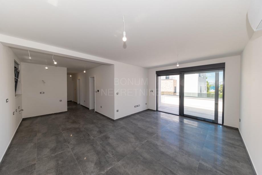 Prodaje se apartman na prvom katu nove zgrade na Murteru, udaljen svega 170 metara od mora i plaže. Sastoji se od hodnika, kuhinje, blagovaonice i dnevnog boravka, dvije kupaonice, tri spavaće sobe, natkrivene terase s koje se pruža pogled na more. Apartman je opremljen inverter klima uređajima, podnim grijanjem u kupaonicama i protuprovalnim vratima, te mu pripada jedno parkirno mjesto. Apartman je odmah useljiv. U sustavu je PDV-a. Odličan izbor bilo za ljetni boravak bilo za stanovanje tijekom cijele kalendarske godine.