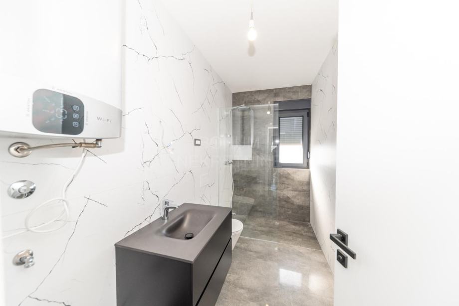 Apartman je opremljen suvremenim sustavom grijanja i hlađenja, uključujući tri klima uređaja i podno grijanje u kupaonici i dnevnom boravku. Kvalitetni materijali korišteni su u završnoj obradi, a velika staklena stijena u dnevnom boravku opremljena je električnim podizačima roleta. Svi prozori imaju ugrađene komarnike, a dodatnu sigurnost i komfor osigurava video portafon.