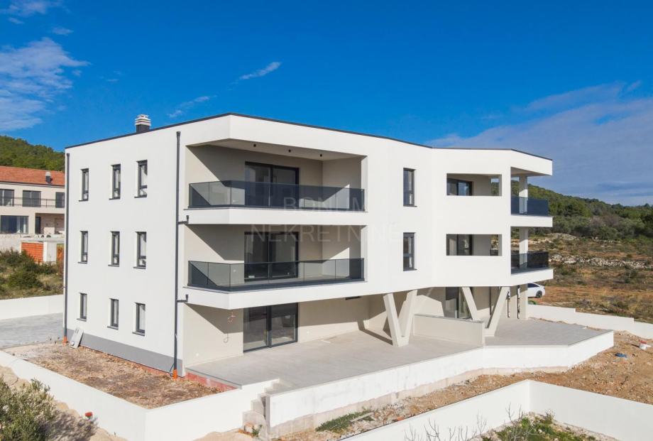 Prodaju se apartmani na odličnoj lokaciji, Tribunj. Zgradu gradi renomirani lokalni investitor. Sastoji se od 6 stambenih jedinica. Na svakom katu su po dva stana te će stanovima u prizemlju pripasti i dio zelene površine. Također, svakom stanu pripada i jedno parkirno mjesto. Gradi se kvalitetno te s kvalitetnim materijalima. Planirani završetak gradnje je ljeto 2025 g.