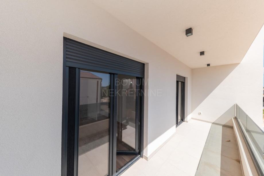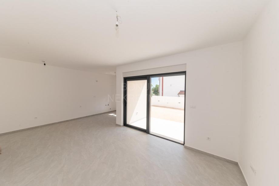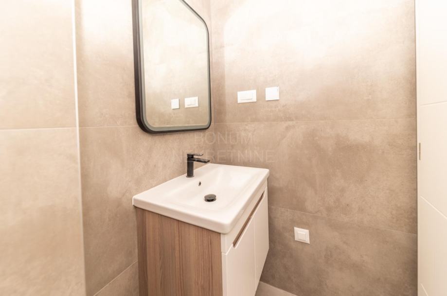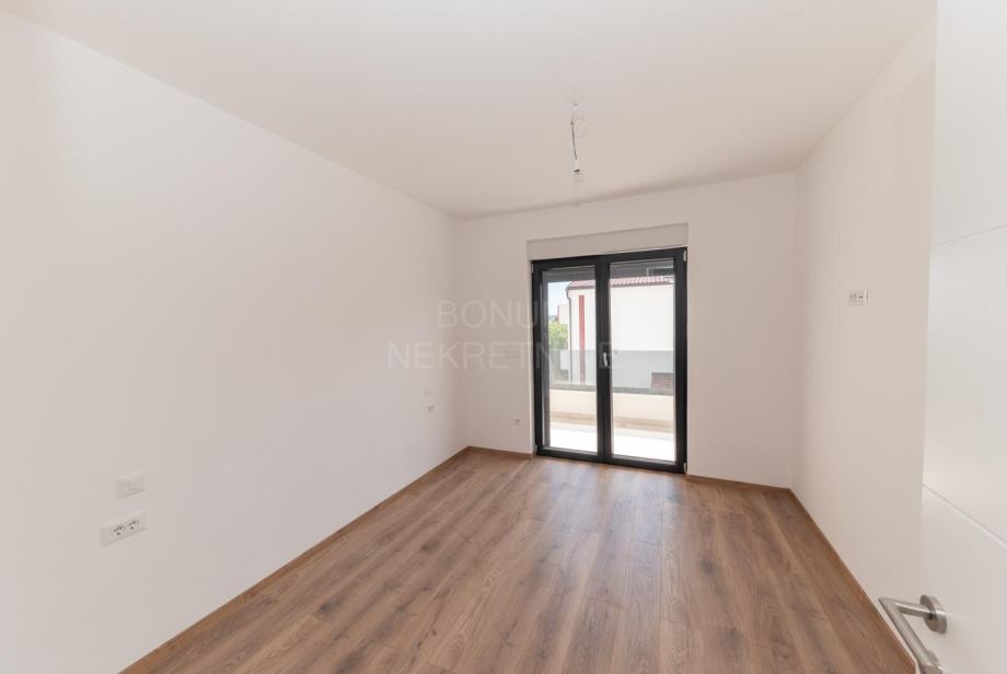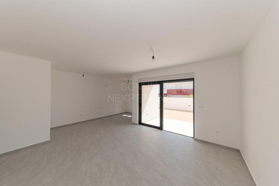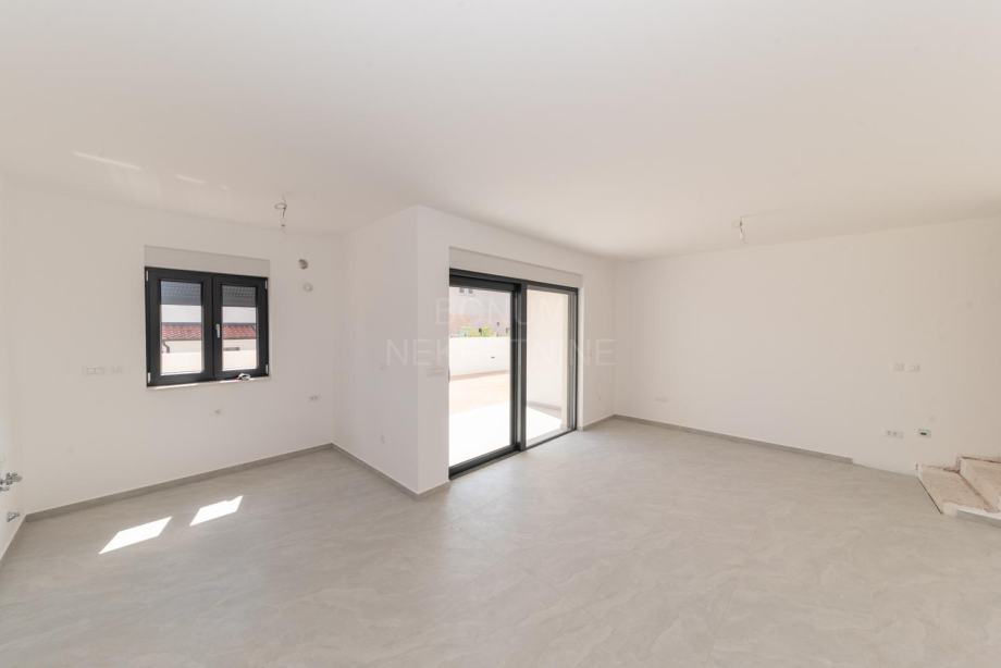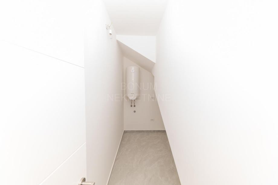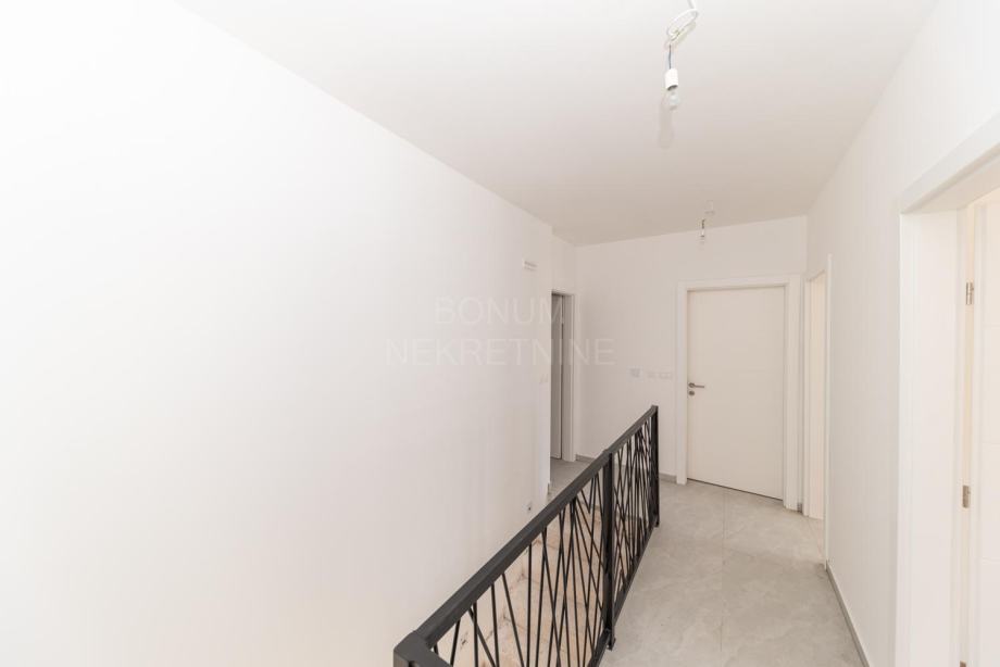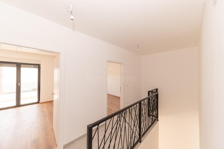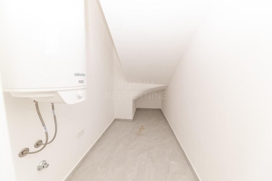 Ovaj funkcionalan dvoetažni stan površine 112,61m² savršen je za one koji traže udobnost i privatnost. U prizemlju se nalazi dnevni dio s kuhinjom, blagovaonicom, kupaonicom i lođom, dok se na katu nalaze dvije spavaće sobe, kupaonica, vešeraj, predsoblje i dvije lođe. Stan ima vrt od 35,48 m² i dva parkirna mjesta.