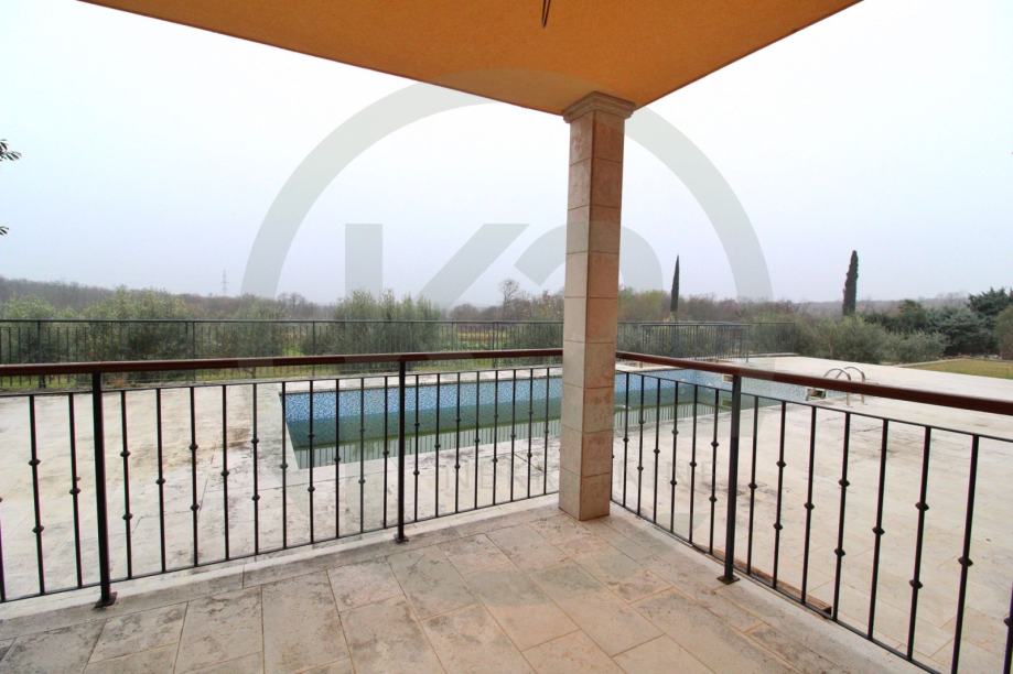 Sastoji se od dva parkirna mjesta, ulaznog prostora, kupaonice sa WC-om, prostranog nedvnog boravka sa kuhinjom i izlazom na lijepu terasu i bazen, stubište koje vodi na kat gdje je smještena kupaonica sa WC-om i dvije spavaće sobe sa izlazima na terasu.