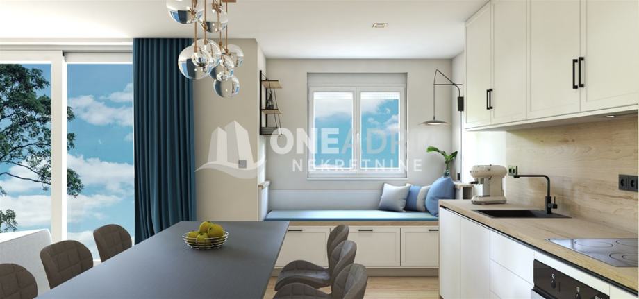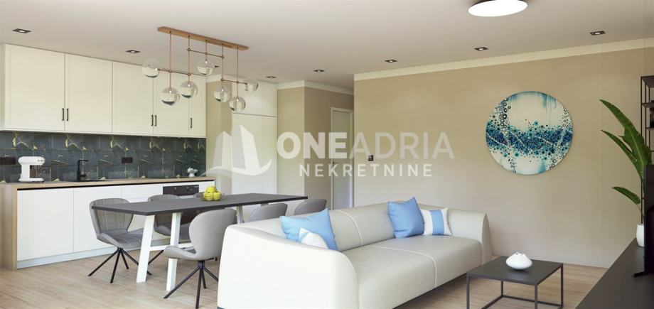 MARČELJEVA DRAGA U ponudi je prostran i odlično opremljen i adaptiran stan: 2S + dnevni boravak. Stan se nalazi na trećem katu zgrade, i upravo se završava opsežna adaptacija i opremanje: nove elektro, plinske i vodovodne instalacije. ALU stolarija, 3 slojni prozori sa komarnicima te električnim roletama, parket hrast, 3 inverter klima jedinice, podno etažno grijanje na plin ( priprema i za grijanje na struju ), kompletna individualizirana rasvjeta. Balkon je sa predivnim pogledom, jugozapadne orijentacije. Stanu pripada i tavan.