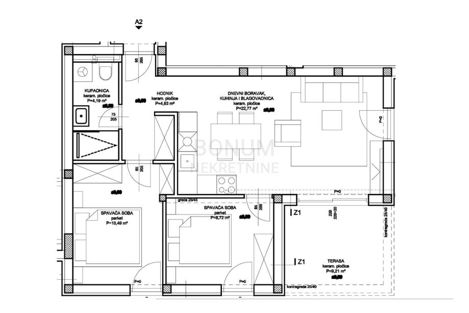 Zgrada se gradi prema visokim standardima gradnje i sastoji se od osam stambenih jedinica raspoređenih na četiri etaže. Opremljena je suvremenim materijalima i sustavima: termo fasadom, protuprovalnim vratima, električnim podizačima roleta s komarnicima, podnim grijanjem u kupaonicama, modernim sanitarijama, klima uređajima u svim prostorijama te staklenim ogradama na terasama. Stanovima u prizemlju pripadaju vrtovi, a završetak gradnje i useljenje planirani su za proljeće 2026. godine.