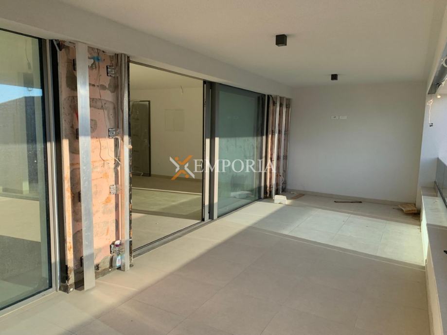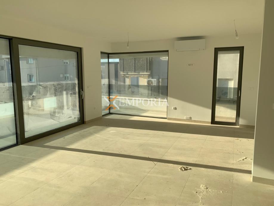Udaljenost ove nekretnine od mora je 440 m. Udaljenost od centra je 3 km.OpremaGradnja se vrši betonskim zidom. Termoizolacija zgrade se izvodi stiroporom debljine 15 cm. Podne obloge su parket i pločice. Prozori su od aluminija s električnim roletama, troslojnim staklom i komarnicima. U spavaćim sobama i u dnevnom boravku se postavljaju klima uređaji.
