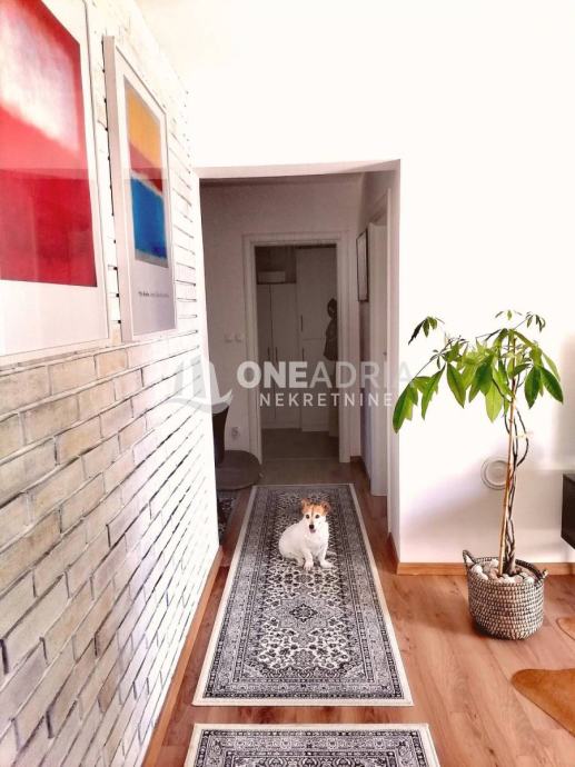 U ponudi imamo stan 300m od mora, kompletno namješten i uređen sa dvije spavaće sobe, dnevnim boravkom, kuhinjom, predsobljem, kupaonicom i terasom od 12m2!