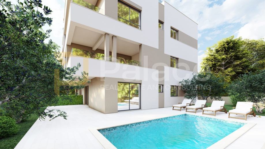 Na prodaju je izvanredan stan u prizemlju, površine 97,33 m², smješten u prekrasnoj Maslenici, svega 200 metara od mora. Ovaj elegantni stan nudi dvije prostrane spavaće sobe i modernu kupaonicu. Uživajte u privatnom vrtu od 57,51 m², u kojem se nalazi bazen s opcijom ugradnje sustava za grijanje. Stan se također može pohvaliti prostranom terasom od 73 m² koja okružuje bazen, kao i natkrivenom terasom, savršenom za opuštanje u toplim ljetnim večerima, te prostranim dnevnim boravkom koji pruža maksimalnu udobnost.