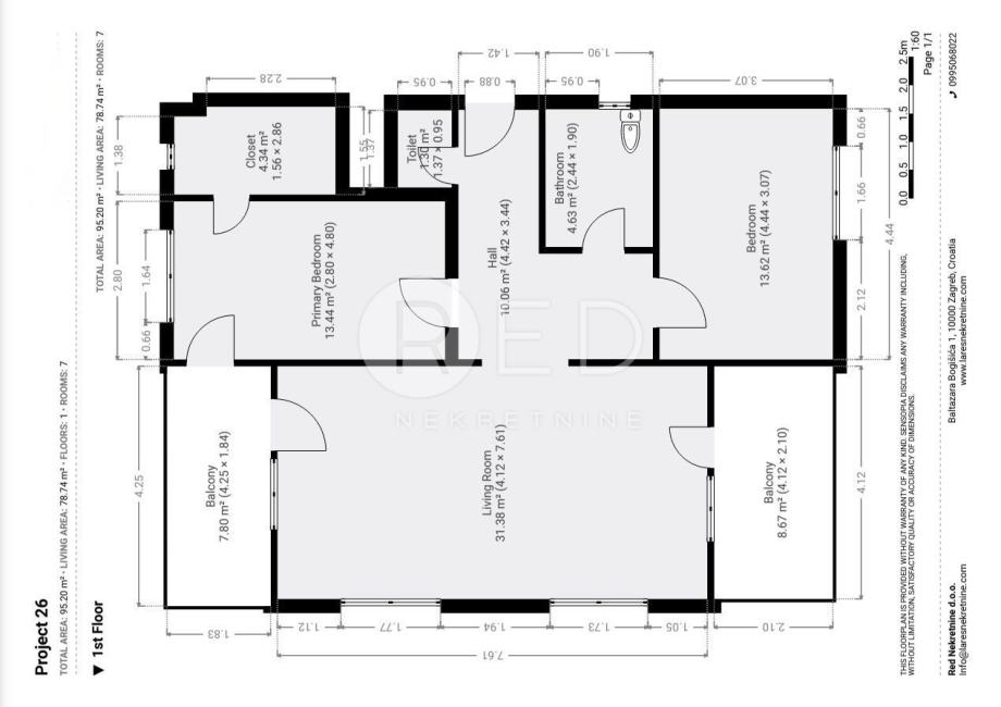 Prodaje se stan na Boriku, površine 93,36 m2 stambene površine. Nalazi se u kući na kojoj je 2023. napravljena nova fasada fasadnim ETIC sustavom 5 cm Caparol.