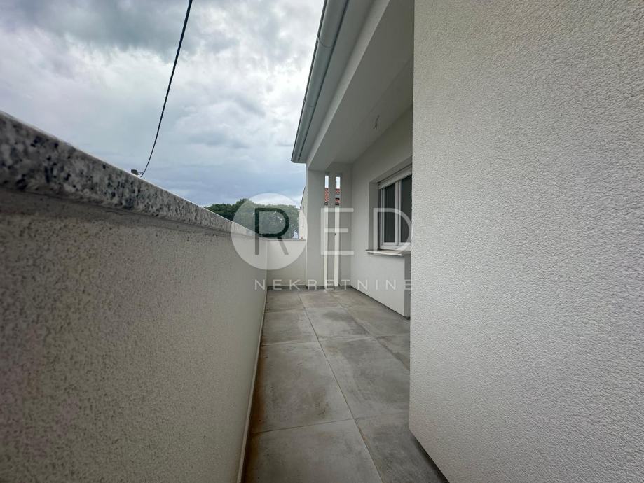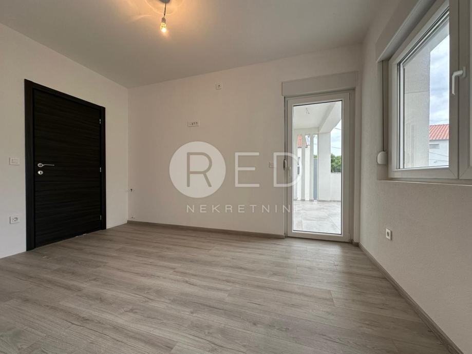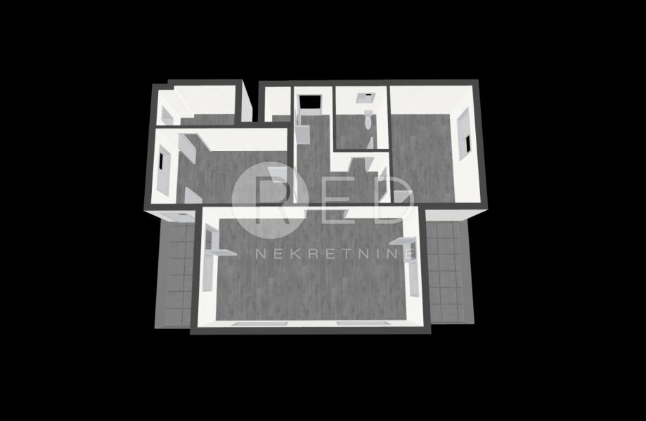 Stan se sastoji od open space kuhinje, blagovaonice i dnevnog boravka s izlazom na balkon i tersu, ostave, hodnika, kupaonice i wc, 2 spavaće sobe od kojih jedna ima izlaz na terasu te walk in ormar. Orijentacija stana je istok-jug-zapad a ulazna vrata stana su sa sjeverne strane.