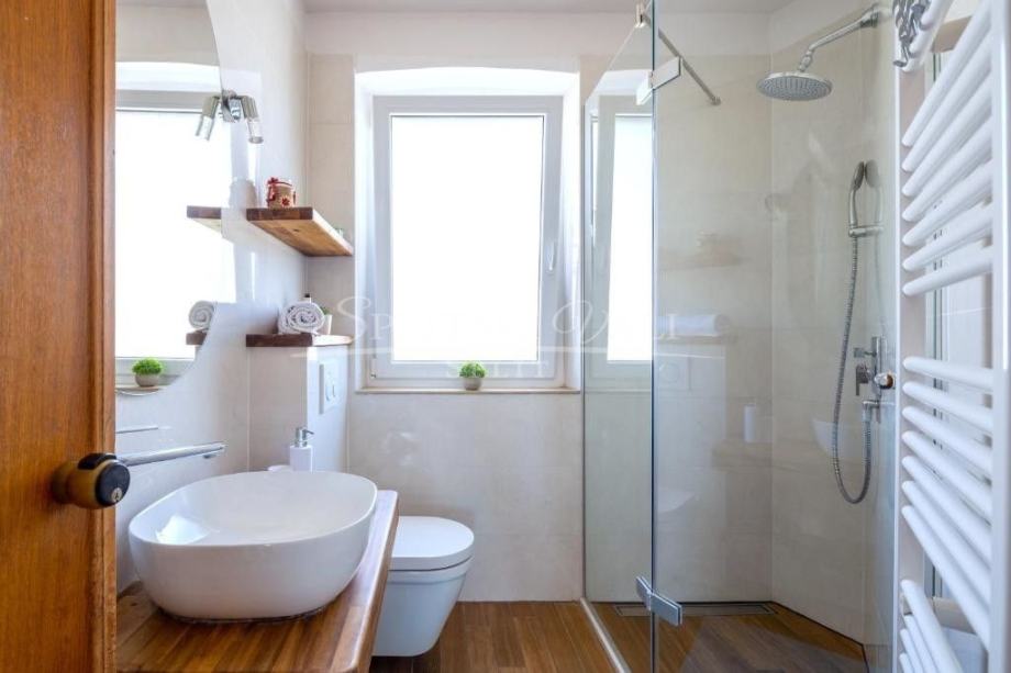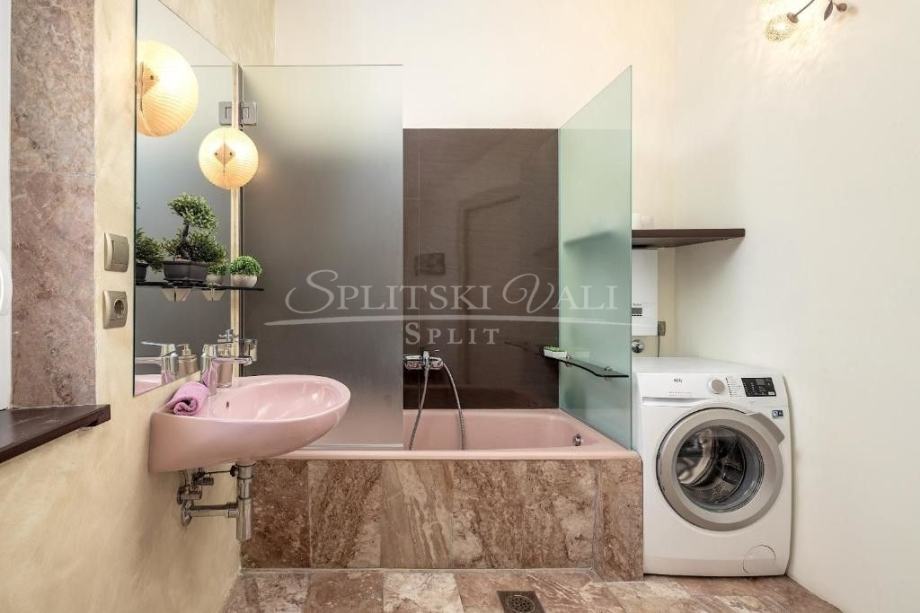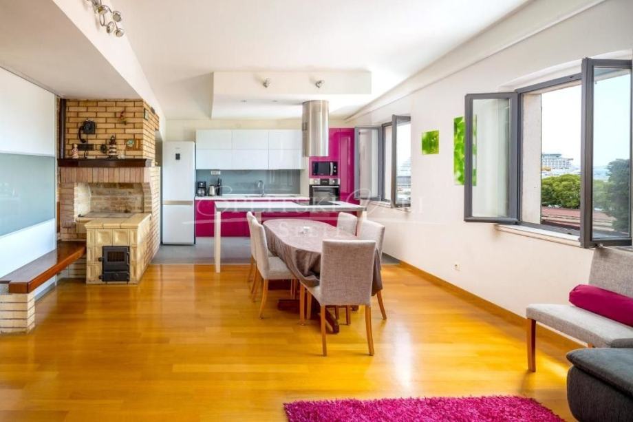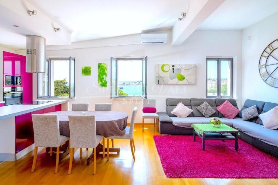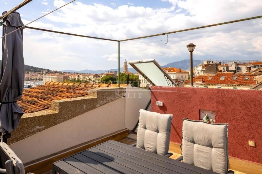 Osim tri spavaće sobe, stan se sastoji od kuhinje s blagovaonicom, dnevne sobe, kupatila, WC-a, hodnika te ima izlaz na prekrasnu krovnu terasu s pogledom na splitsku rivu.