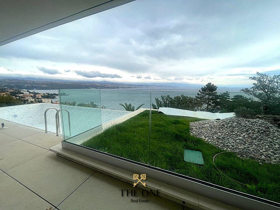 Luksuzni trosoban stan s bazenom u prestižnoj novoizgrađenoj zgradi nalazi se u Opatiji, poznatoj po elegantnoj arhitekturi i spektakularnim pogledima na kvarnerski zaljev.
