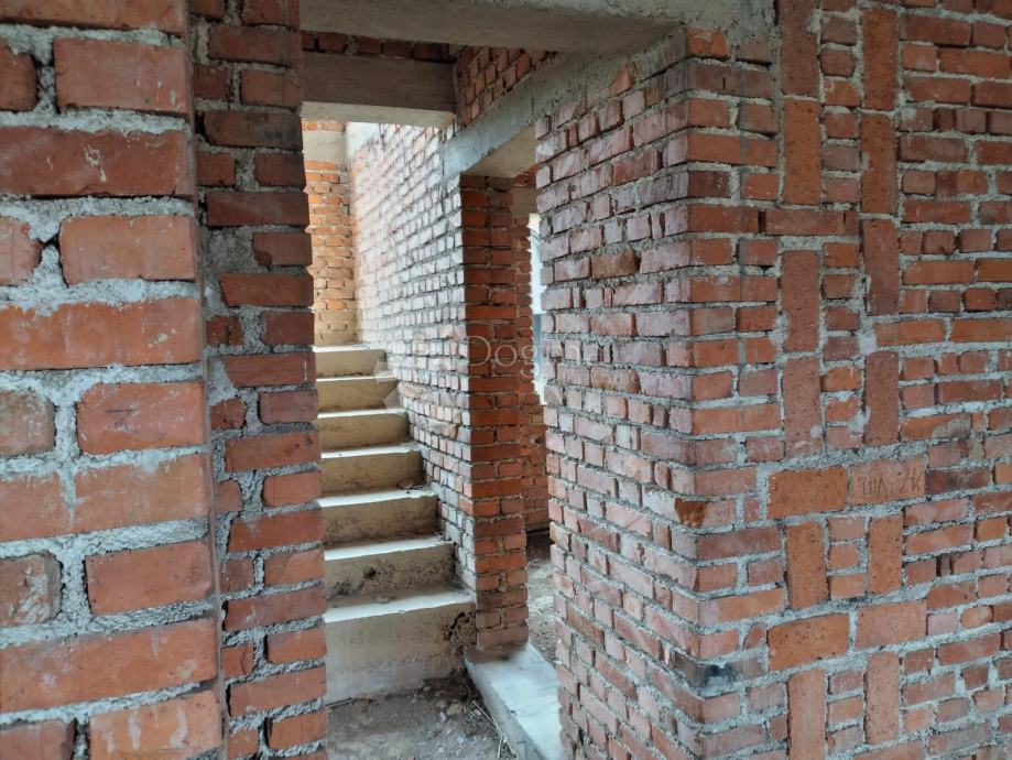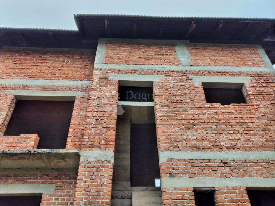 U prodaju smo dobili ovu dvokatnicu s 4balkona, zidanu od sitne cigle s po jednim stanom na svakoj etaži. Krov ne pušta, struja je bila i odmah je ispred.
