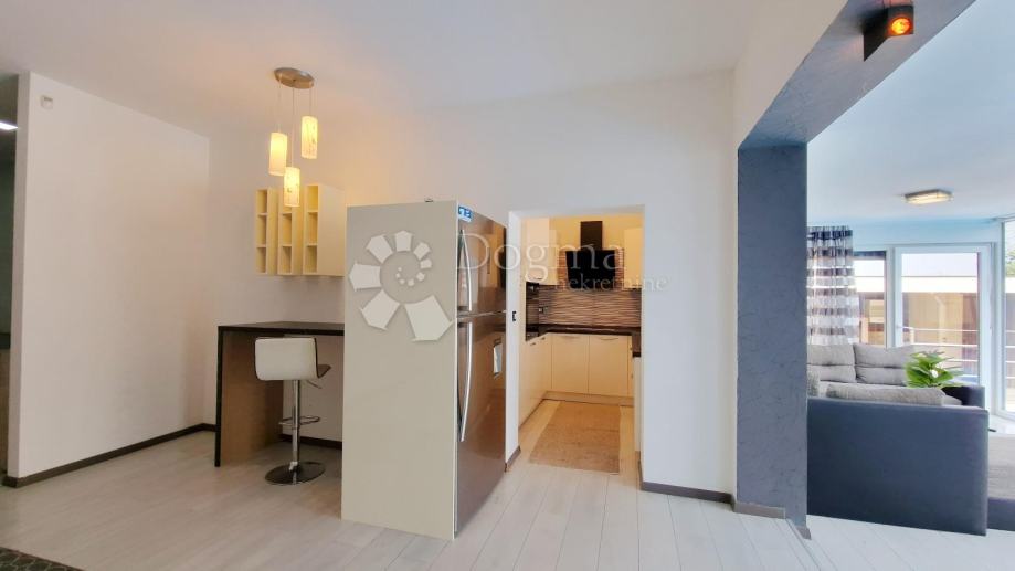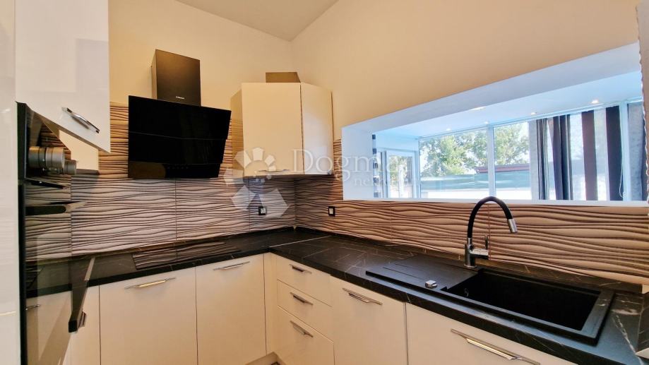 - kuhinja, blagovaona i dnevni boravak sa staklenim stijenama koje omogućuju veliku količinu prirodne svjetlosti i pogled na bazen, sunčalište i ljetnu kuhinju