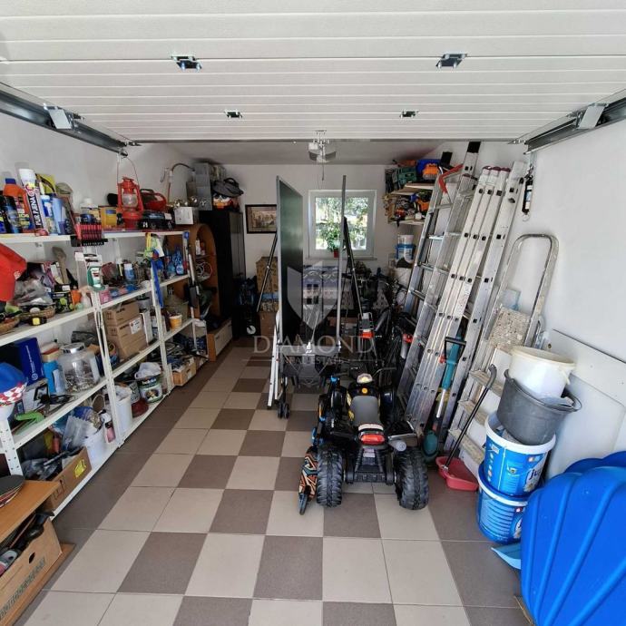 Prodajemo jako lijepu i ugodnu obiteljsku kuću koja se smjestila u mirnom naselju tik do Labina. Kuća je izgrađena na parceli od 477 kvadrata te je zadnja u ulici i poslije nje se prostire zeleni pojas i zagarantirana tišina i intima. Kuća je jako ugodna i građena je za funkcionalno stanovanje. Ograđena je u potpunosti zidom i kovanom ogradom te posjeduje i dvije garaže sa automatskim vratima za parkiranje limenih ljubimaca.
