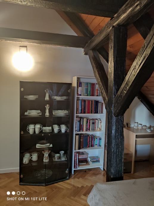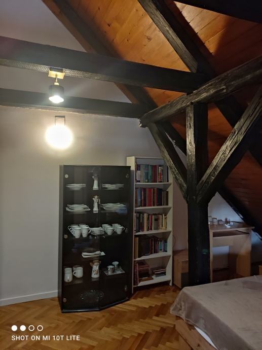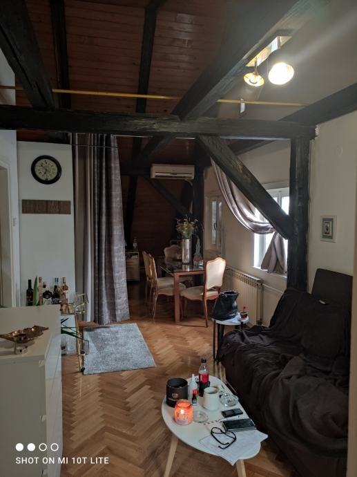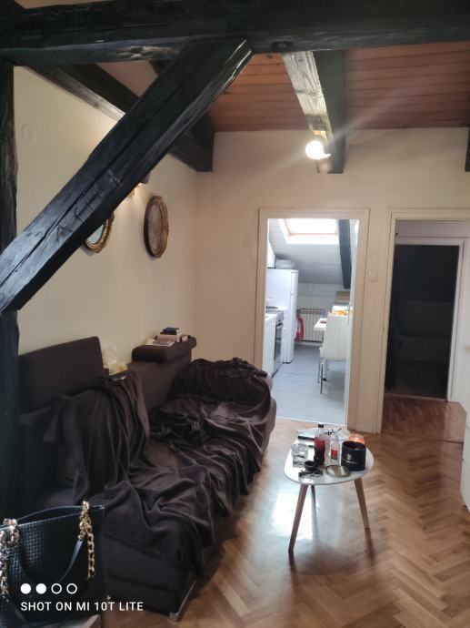 Potkrovlje uređen stan - stepenice, kuhinja, dnevni boravak, kupaonica (kada), soba - ukupno 51 m2.
