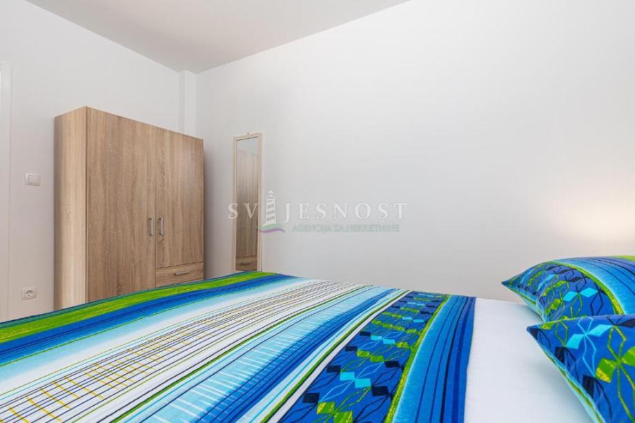 U jednom takvom vrlo lijepom, urednom i uređenom privatnom zdanju u prizemlju iznajmljuje se stan/apartman površine 80 m2 (2S+DB), sa lijepom terasom pogleda na more.