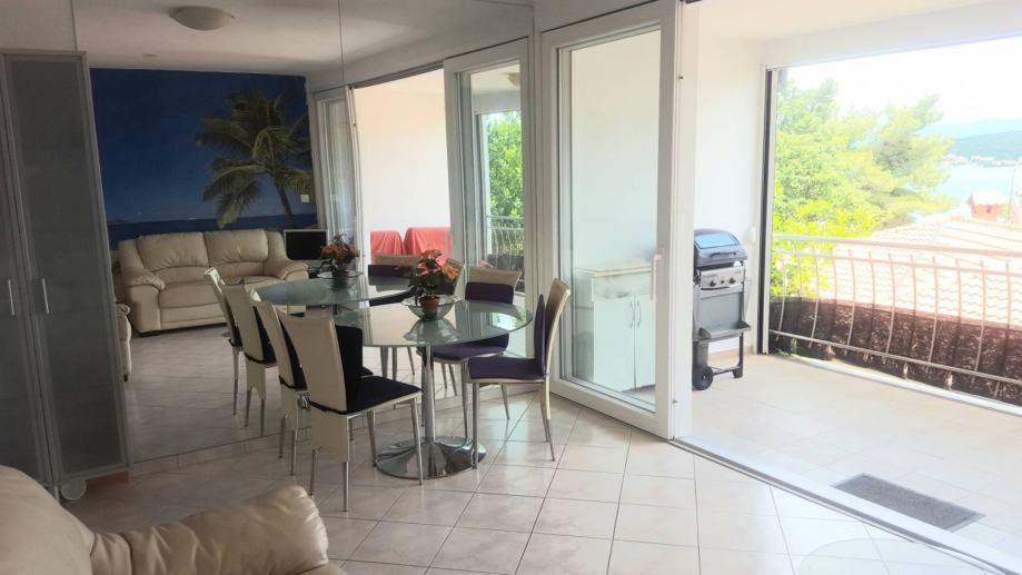 Potpuno renovirana klizna staklena stijena cijelom dužinom apartmana te se pruža pogled i iz dnevnog boravka!!