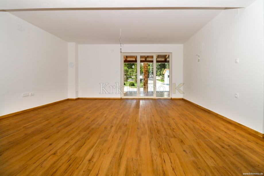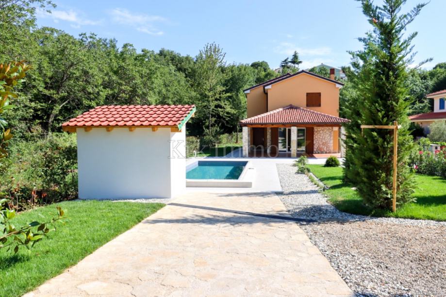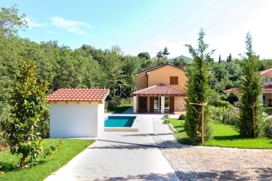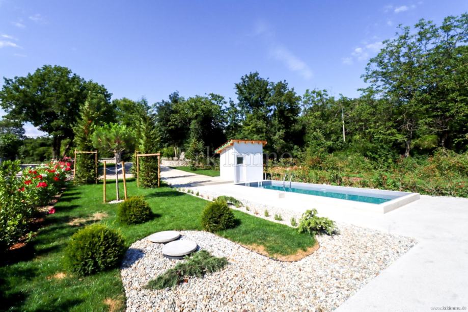 Kuća ima stambeni prostor površine 175m2, a proteže se na dvije etaže i sastoji se od četiri spavaće sobe, tri kupaonice, dnevnog boravka s kuhinjom i blagovaonicom. Kući pripada i velika okućnica površine 960m2 na kojoj se nalazi bazen te parkirna mjesta za više automobila. Kuća se prodaje nenamještena.