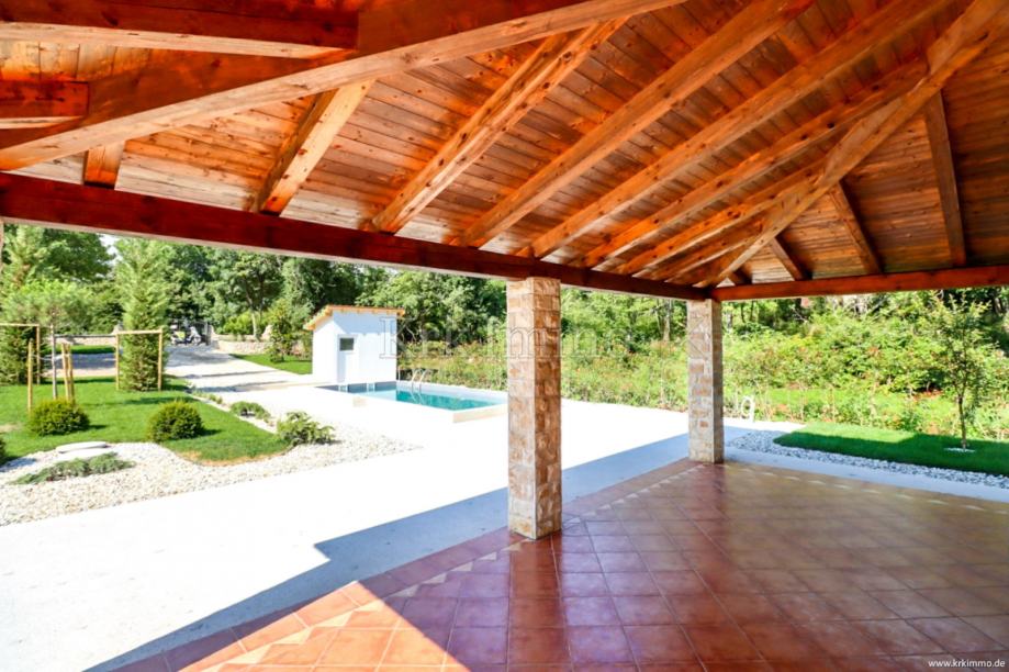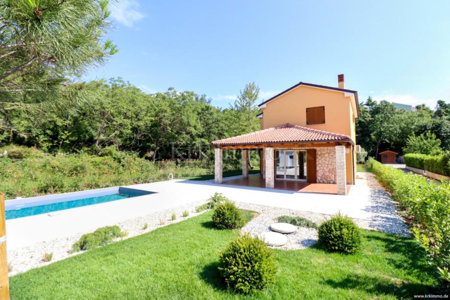 Na prodaju je samostojeća kuća izgrađena na velikoj parceli površine preko 1100m2. Kuća se nalazi na mirnoj lokaciji u okolici Dobrinja koja pruža mirnu ljetnu idilu otoka Krka.