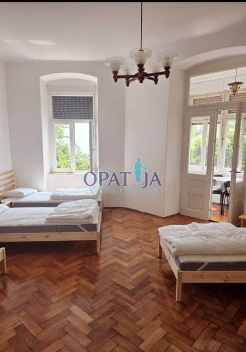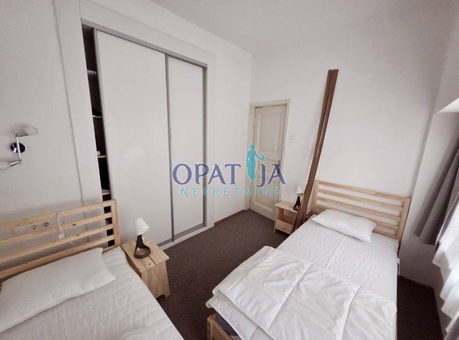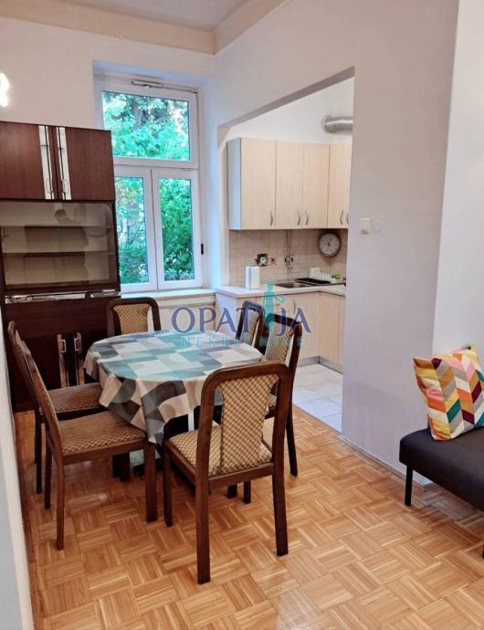 U centru Opatije, u trećem redu od mora i nadomak svih sadržaja, nudimo potpuno opremljen i namješten stan za dugoročni najam. Smješten je u visokom prizemlju prekrasne secesijske vile s ograđenom okućnicom koja pruža potpunu privatnost. Stan se sastoji od dvije spavaće sobe, kuhinje, blagovaonice, dnevnog boravka, kupaonice s WC-om, dodatnog WC-a, garderobe i loggie s prekrasnim pogledom na more—idealnim za svakodnevno opuštanje. Opremljen je optičkim internetom, MAX TV-om, klimatizacijom te dodatnim norveškim radijatorima, a najveća prednost je vlastito parkirno mjesto u srcu Opatije, kao i blizina plaže i šetnice Lungomare. Kad parkirate automobil možete sve pješke obaviti: kupovinu, banku, kupovinu namirnica, teretanu, šetnju, ljeti plažu....Također u blizini je autobusna stanica u oba smjera. Ne propustite! Prilikom ulaska u najam potpisuje se ugovor i plaća polog + prva najamnina. Stan je sunčan, s lijepim pogledom i idealan za život bez automobila—plaža, sportska dvorana, autobusna stanica, šetnica Lungomare i svi važniji sadržaji nalaze se u neposrednoj blizini.