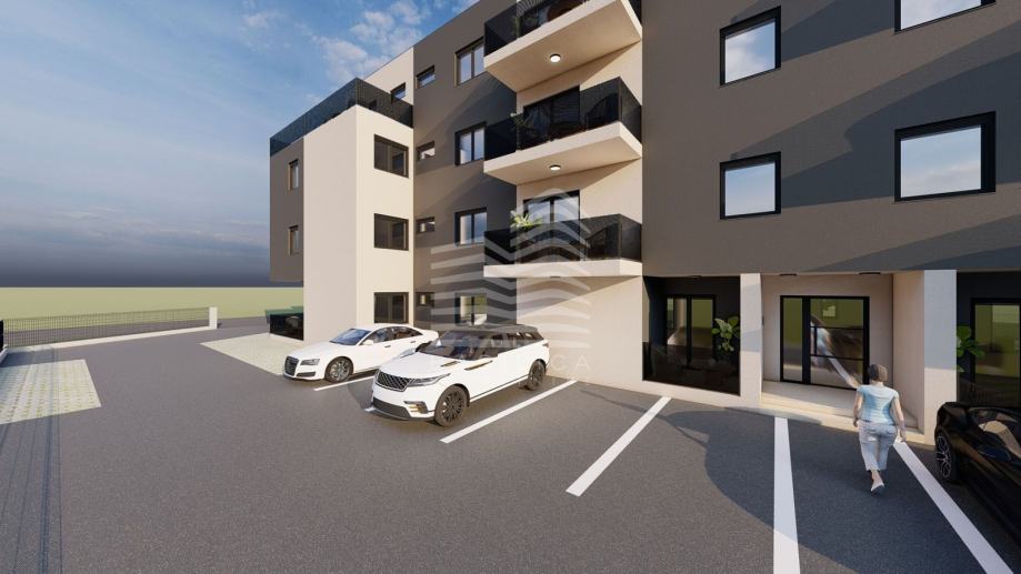 OPREMA:- Konstrukcija armirano betonska, pregradbeni zidovi knauf- Izolacija – termo fasada- stubište izolirano- PVC stolarija + pvc rolete- dizalice topline sa podnim instalacijama grijanja- pločice prve klase u kupaonicama, parket u ostatku stana- protuprovalna i protupožarna vrata- portafon