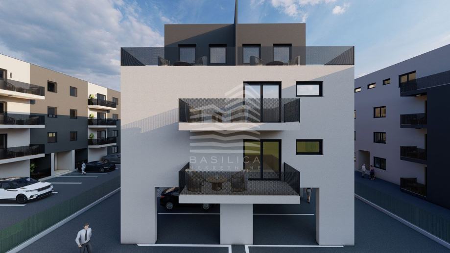 OPREMA:- Konstrukcija armirano betonska, pregradbeni zidovi knauf- Izolacija – termo fasada- stubište izolirano- PVC stolarija + pvc rolete- dizalice topline sa podnim instalacijama grijanja- pločice prve klase u kupaonicama, parket u ostatku stana- protuprovalna i protupožarna vrata- portafon