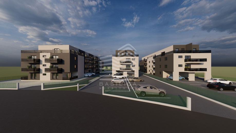 OPREMA:- Konstrukcija armirano betonska, pregradbeni zidovi knauf- Izolacija – termo fasada- stubište izolirano- PVC stolarija + pvc rolete- dizalice topline sa podnim instalacijama grijanja- pločice prve klase u kupaonicama, parket u ostatku stana- protuprovalna i protupožarna vrata- portafon