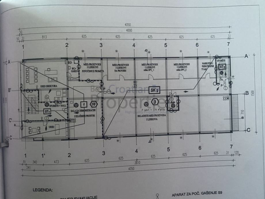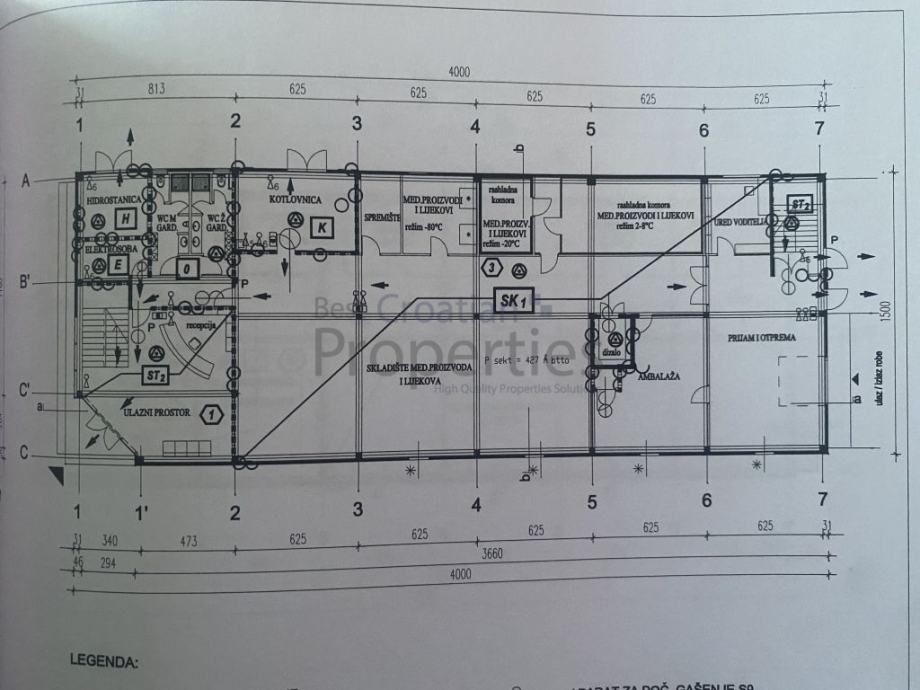 Na zemljištu je ishođevinska dozvola za objekt veleprodaje ljekova i medicinske opreme ukupne brutto površine 1.807,06 m2 (prizemlje: 594,68 m2, 1.kat: 606,05 m2, 2.kat: 606,34 m2) pri čemu je izgrađenost čestice 21%. Dimenzije predvišenog obijekta su 41m X 15m, a ukupne visine 11,65m (visina do vijenca je 10,55m).