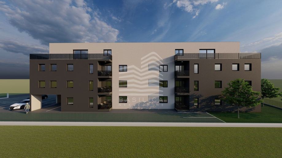 OPREMA:- Konstrukcija armirano betonska, pregradbeni zidovi knauf- Izolacija – termo fasada- stubište izolirano- PVC stolarija + pvc rolete- dizalice topline sa podnim instalacijama grijanja- pločice prve klase u kupaonicama, parket u ostatku stana- protuprovalna i protupožarna vrata- portafon