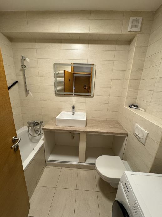 Stan je upravo osvježen i od tad nije korišten: pobrušen i prelakiran parket u cijelom stanu, pomalani svi zidovi i stropovi u perivu boju, novi namještaj u prostorijama, zamijenjeni svi prekidači i utičnice, sva nova rasvjetna tijela, nova perilica rublja, novi 65 inčni smart TV, novi kombinirani hladnjak/zamrzivač, nova sjedeća garnitura za balkon.