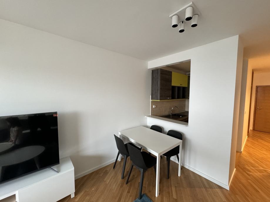 Raspored: hodnik, dnevni boravak s blagavaonom i izlazom na prostrani natkriveni balkon cca 5 m2, kuhinja, roditeljska spavaća soba s velikim ugradbenim ormarom, dječja/gostinjska soba s ormarom i komodom