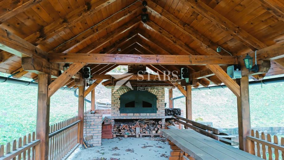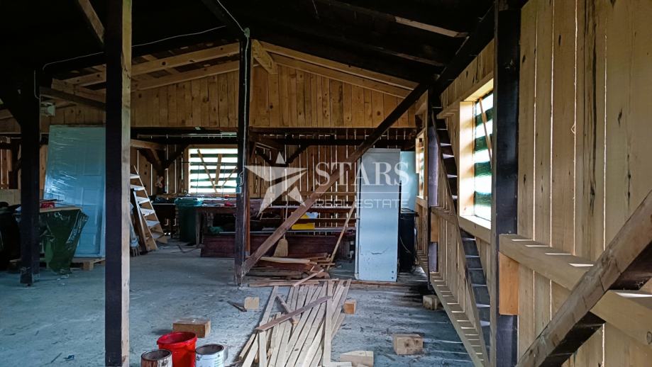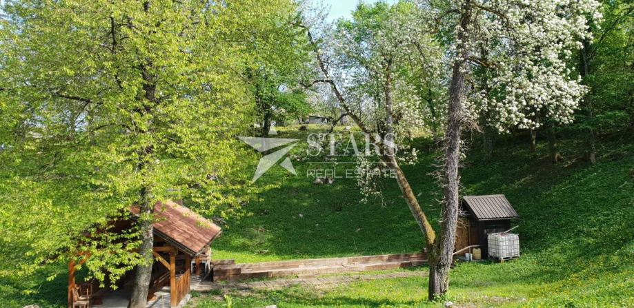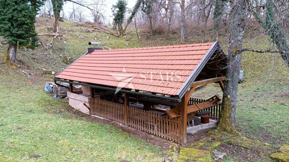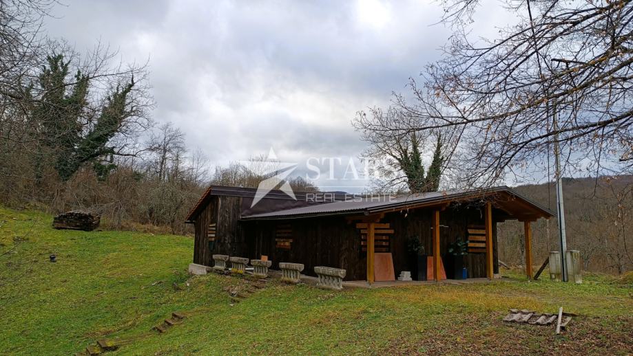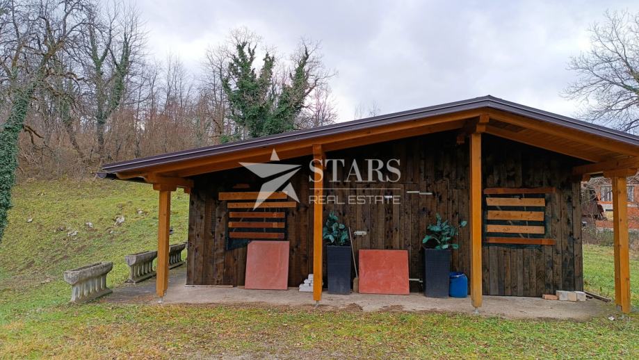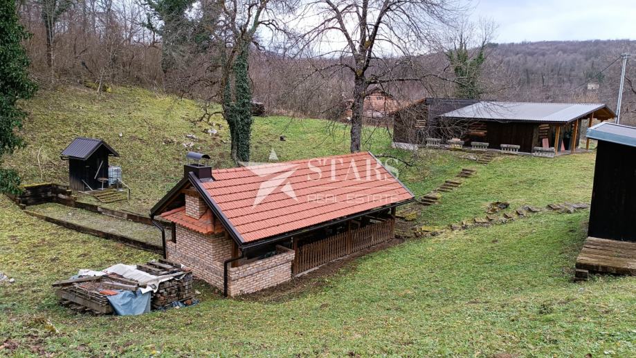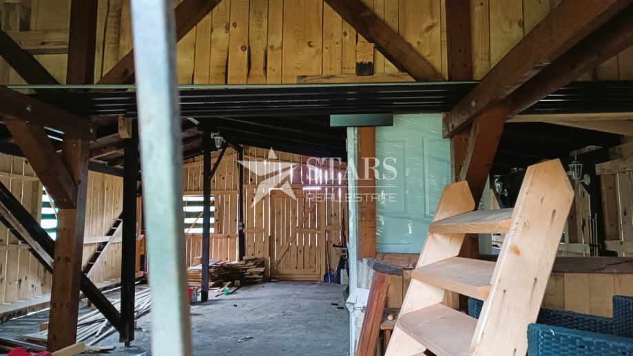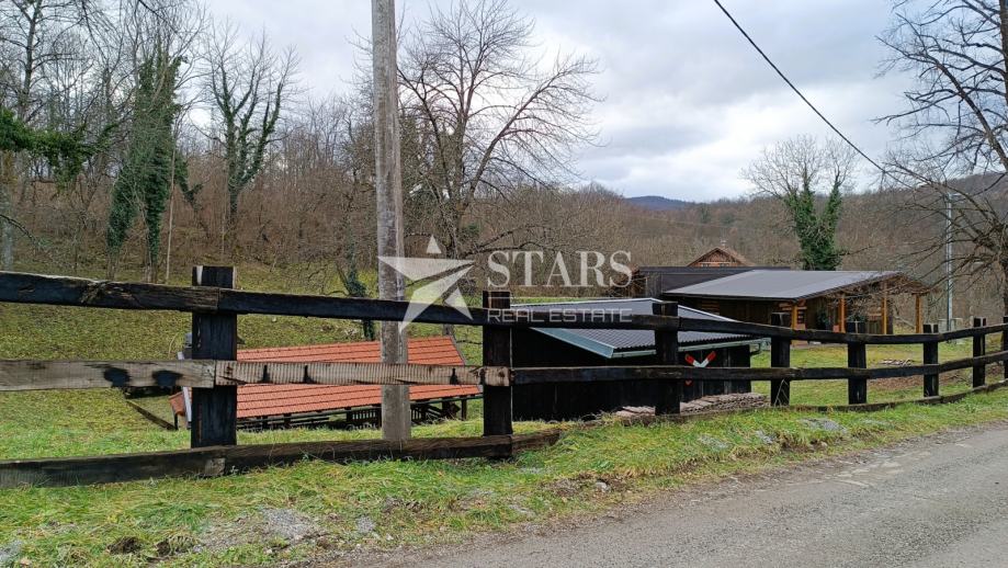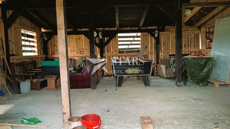 Na zemljištu se nalazi drvena kuća od cca 130 m2, djelomično dovršena – postavljen je novi krov, a unutrašnjost je spremna za adaptaciju po vašim željama. Projektirana je kao kuća za odmor s: