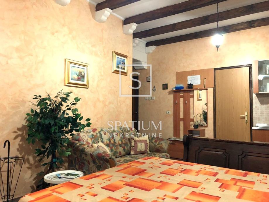 Kat, na koji se dolazi unutarnjim stepeništem, sastoji se od kupaonice, spavaće sobe te kuhinje s blagovaonicom i dnevnim boravkom iz kojega se izlazi na balkon.