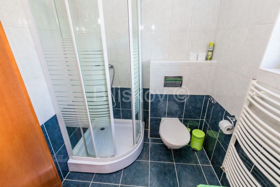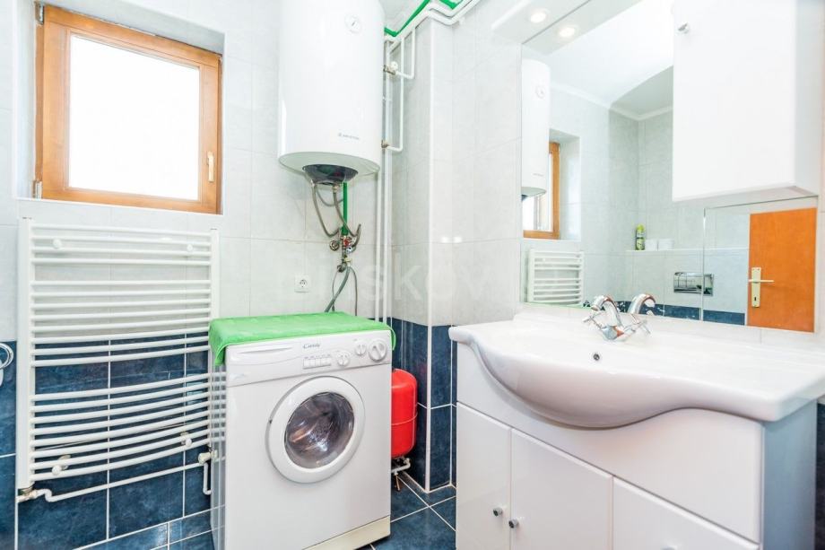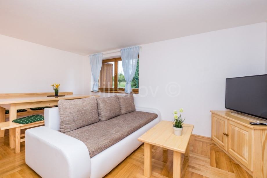 Na prizemlju se nalazi predsoblje, dnevni boravak, kuhinja, ostava. Na prvom katu kuće se nalaze dvije spavaće sobe i kupaonica, a u potkrovlju se nalazi jedna velika soba s kupaonicom.