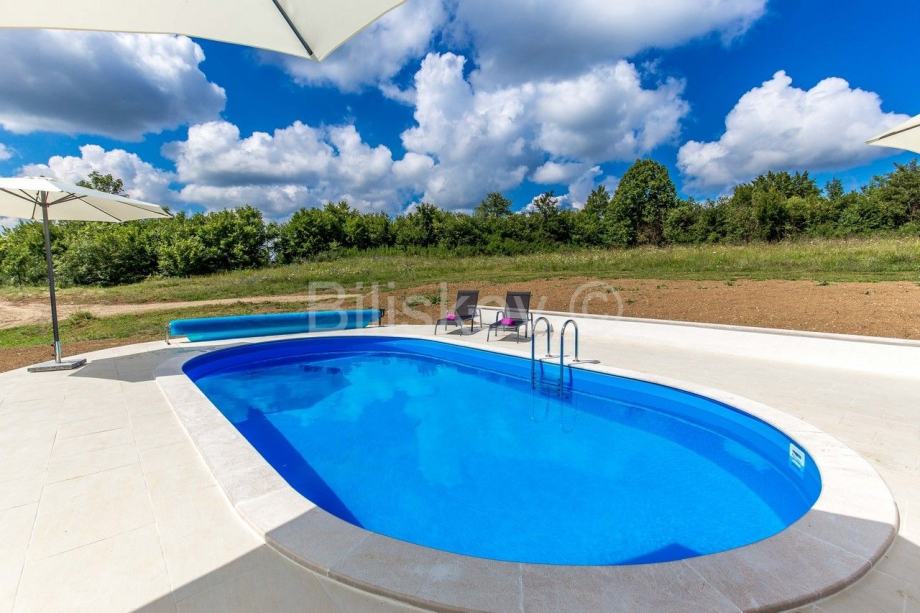 Kuća ima grijani bazen i dvije natkrivene terase.