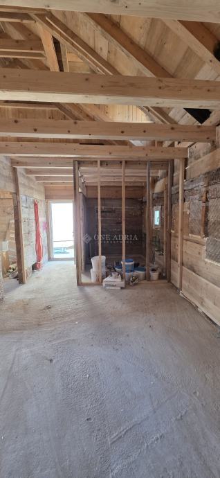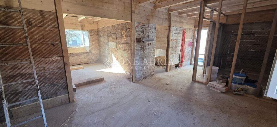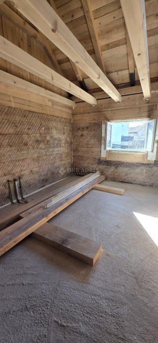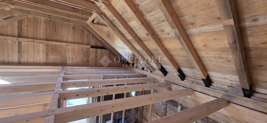 Unutrašnjost je u roh-bau fazi, s naglaskom na prekrasne nove vidljive drvene grede koje prostoru daju toplinu i karakter. Potkrovlje visine cca 2,60 m pruža izvrsnu osnovu za open space koncept, s obiljem prirodnog svjetla zahvaljujući prozorima na obje strane kuće, uz otvoren pogled prema planini Klek.