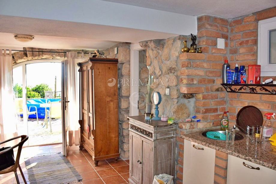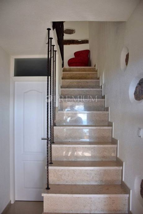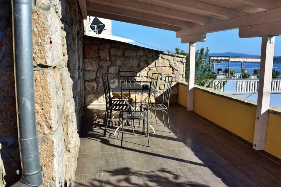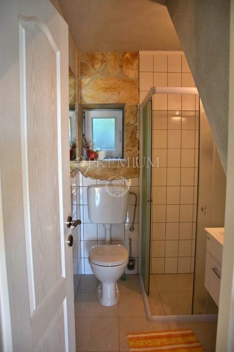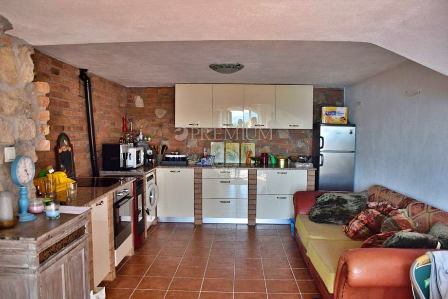 Okolica Crikvenice, prodaja adaptirane kamene kuće u nizu sa prekrasnim pogledom na more. Kuća je izgrađena na parceli od 122 m2, a zadnja adaptacija je bila 2016.g. Kuća ima stambenu površinu od 96 m2 i prostire se na tri etaže. U prizemlju se nalazi garaža koja ima površinu od 35 m2. Na prvom katu se nalazi studio apartman koji se sastoji od dnevnog boravka sa kuhinjom, kupaonom i prostranom terasom od 50 m2 sa koje se prostire predivan pogled na more. Na drugom katu se nalazi dnevni boravak sa kuhinjom, kupaona , terasa od 10 m2 sa pogledom na more, a unutarnje stepenice vode do spavaće sobe. Svaka etaža ima zaseban ulaz. Kuća je u potpunosti opremljena i namještena, PVC stolarija, podni oblozi od keramike i parketa, grijanje na pelete, kabel tv, sat tv , internet. Kući pripada i okućnica od cca. 20 m2.
