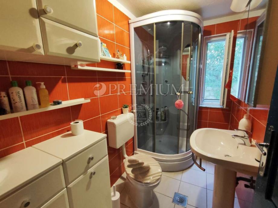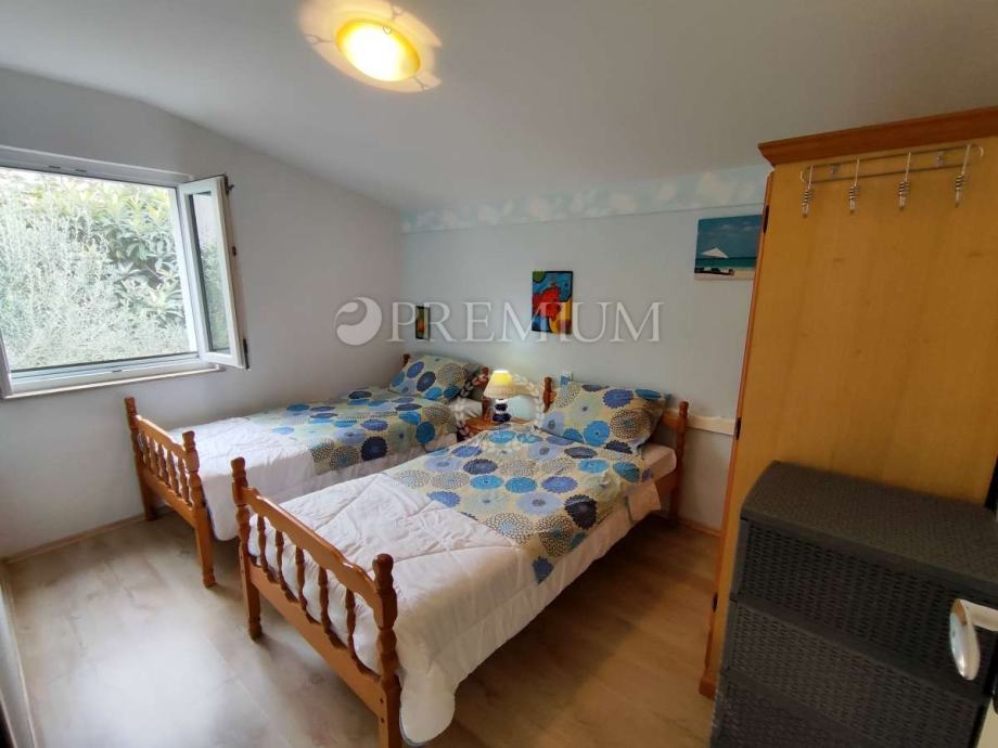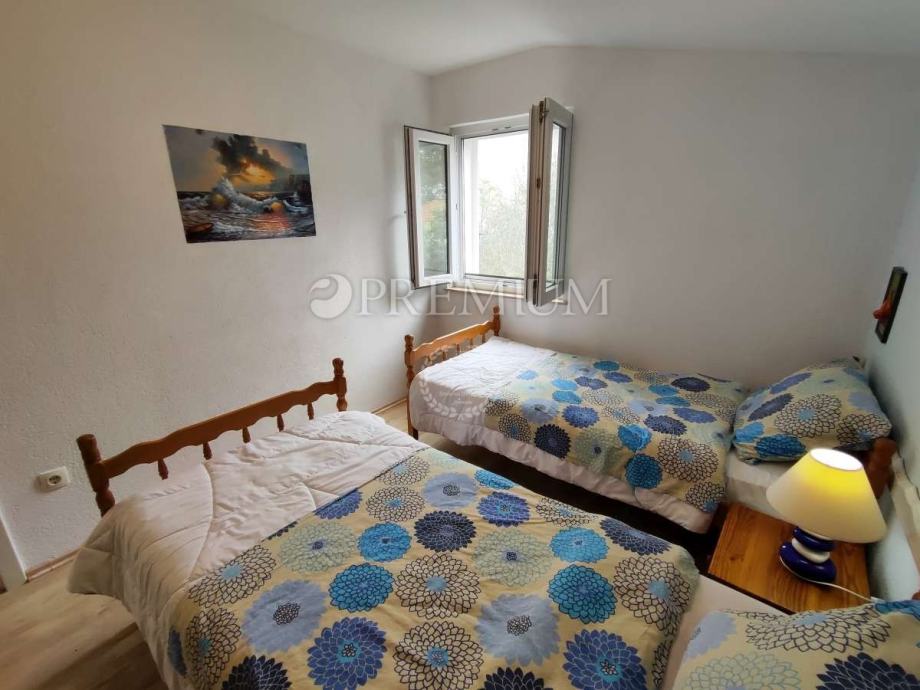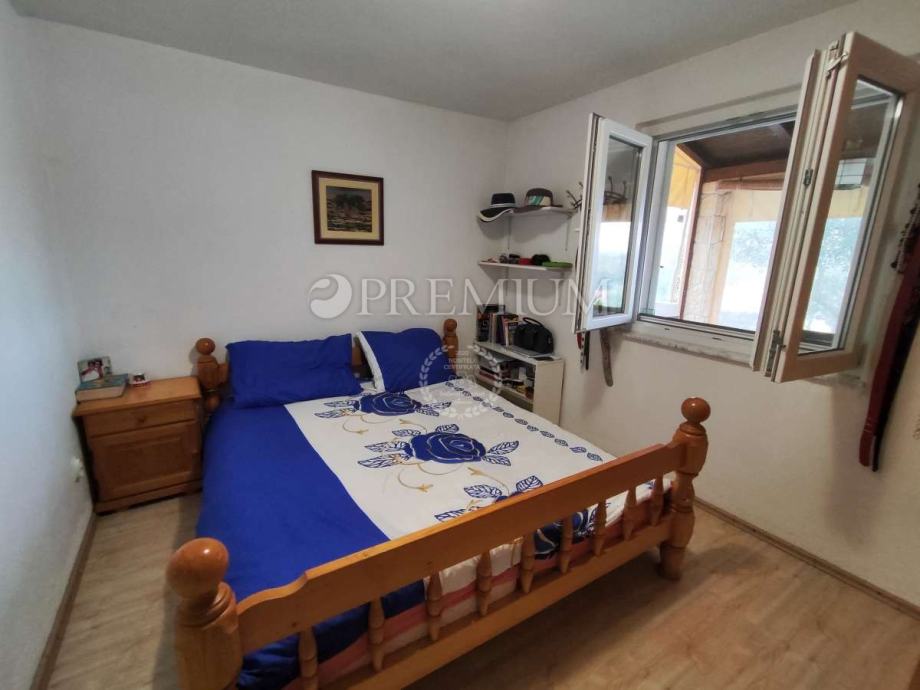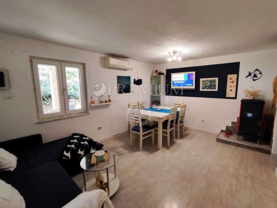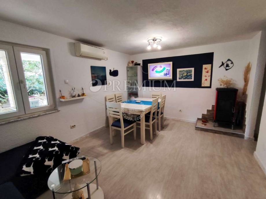 Prizemlje kuće se sastoji od 2 spavaće sobe, kupaonice, kuhinje s blagovaonicom i dnevnog boravka s izlazom na terasu, s koje se pruža pogled na more.