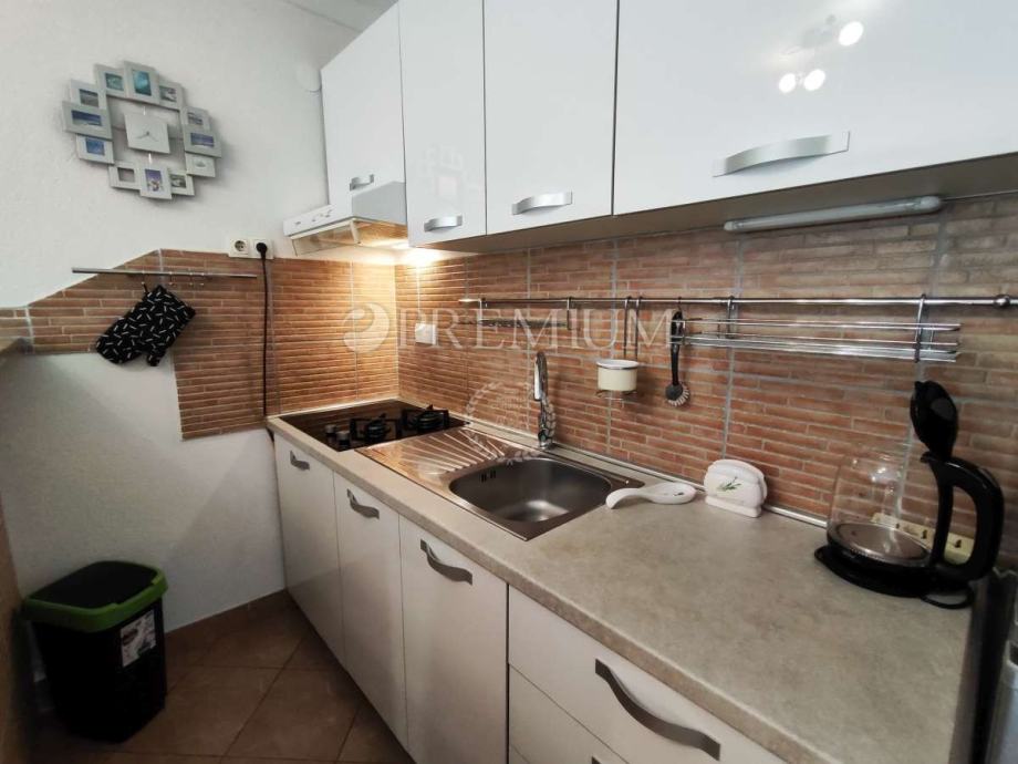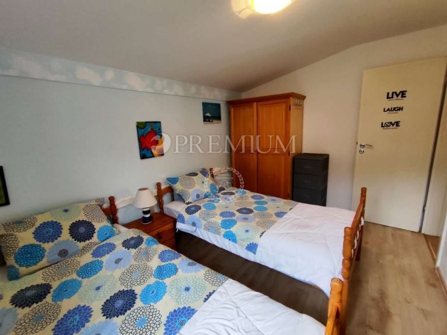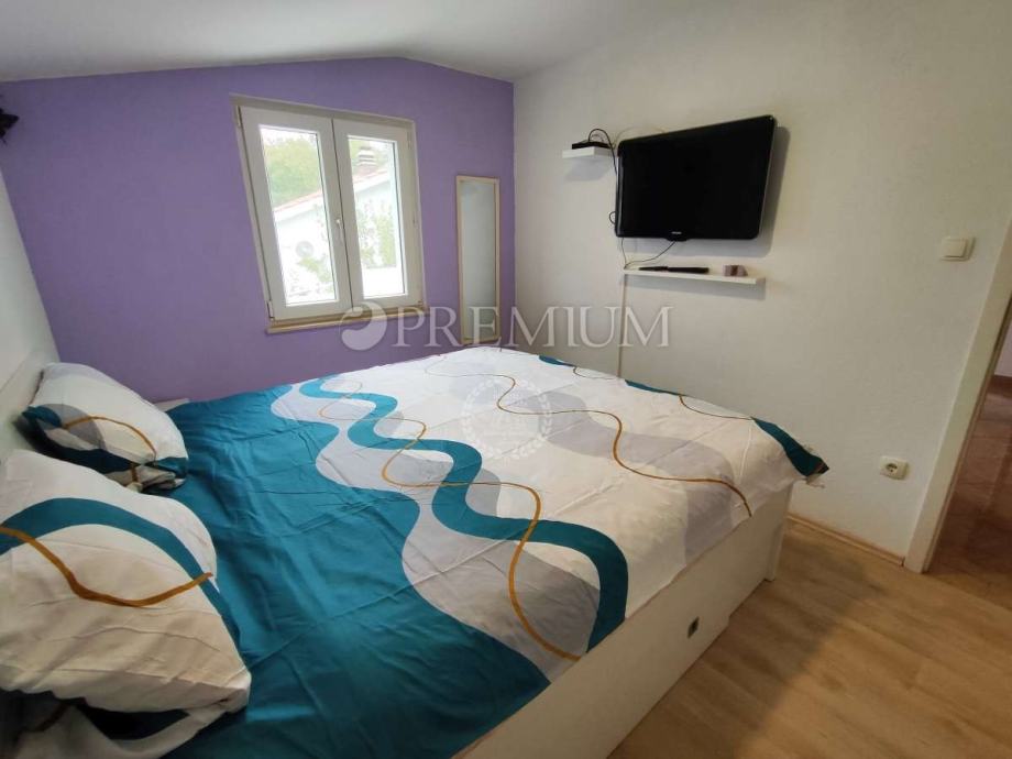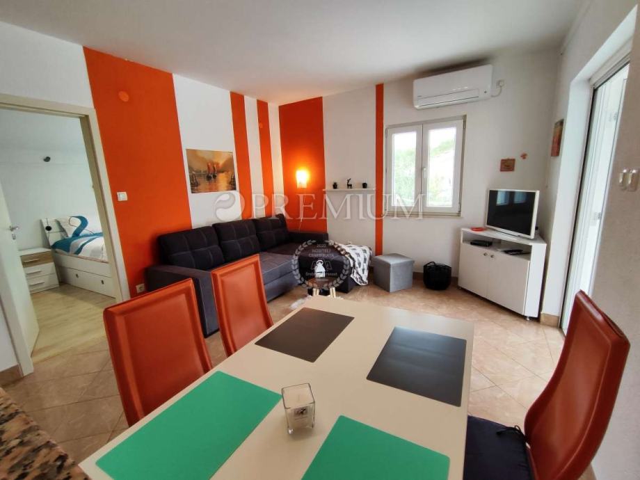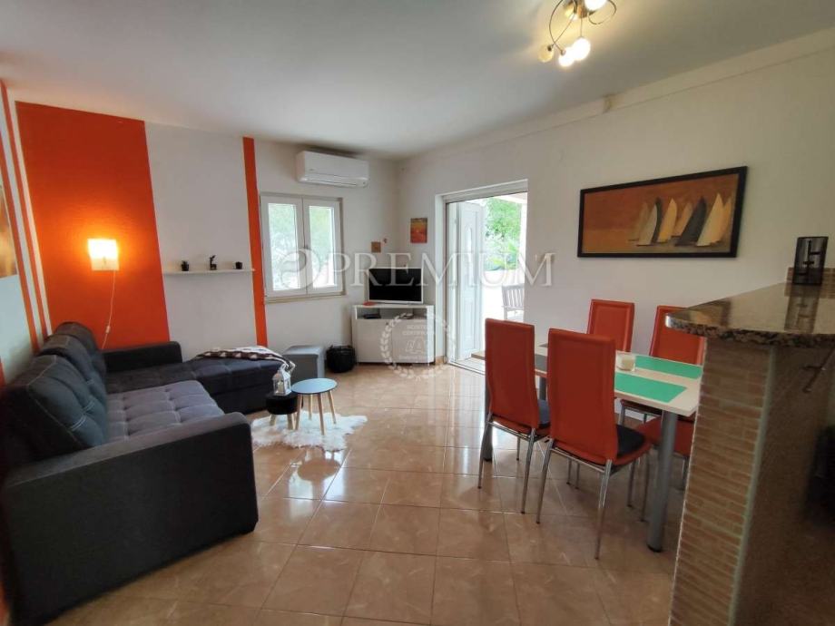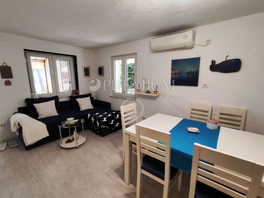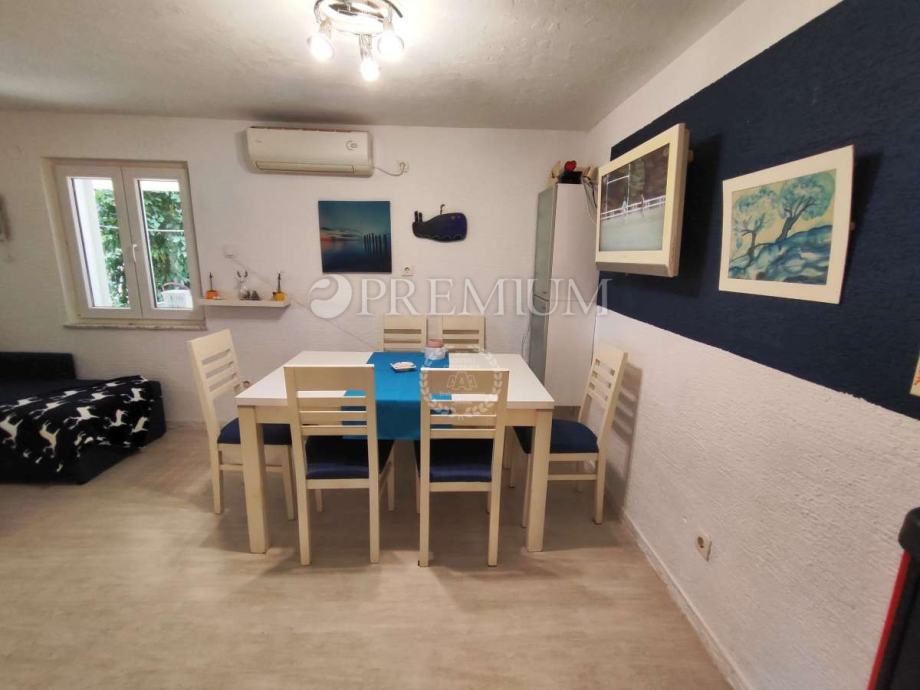Prizemlje kuće se sastoji od 2 spavaće sobe, kupaonice, kuhinje s blagovaonicom i dnevnog boravka s izlazom na terasu, s koje se pruža pogled na more.