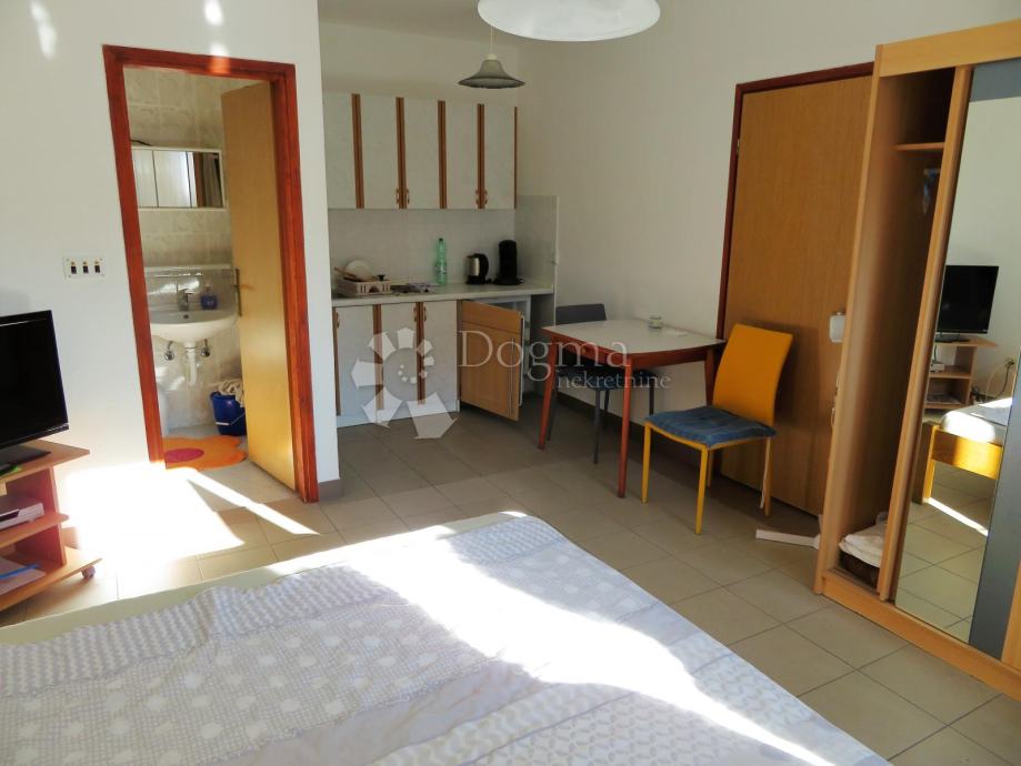 Veći apartman - u prizemlju od 54 m², koji se sastoji od predprostora, dnevnog boravka sa kuhinjom, spavaćom sobom, kupaonicom i terasom.