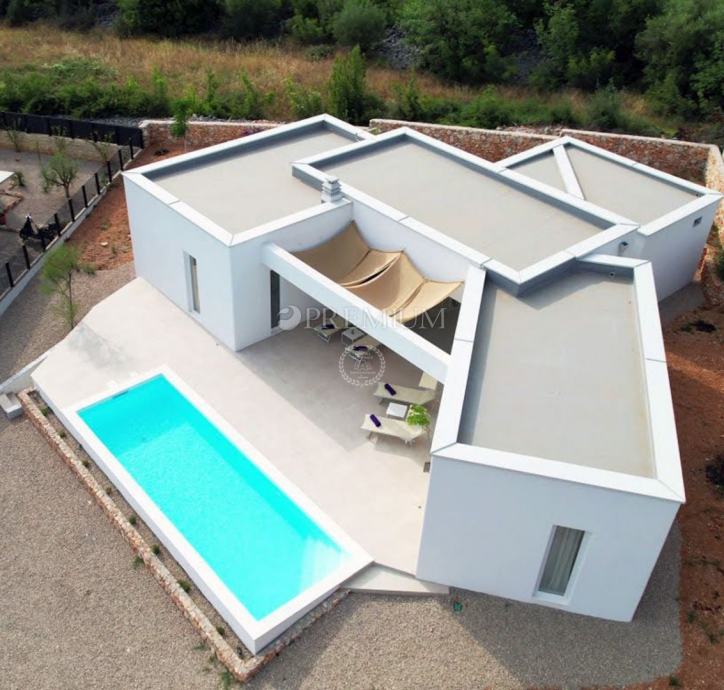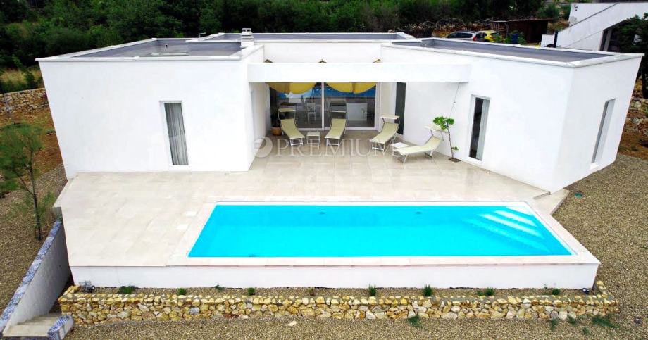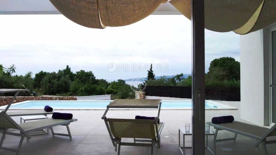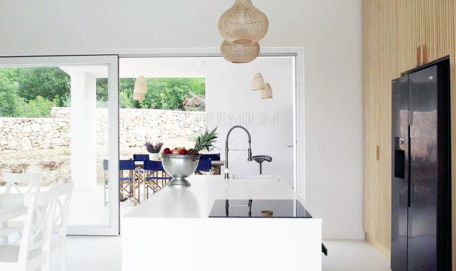 Okolica Krka, prodaje se moderna samostojeća kuća prizemnica s prekrasnim pogledom na more.
