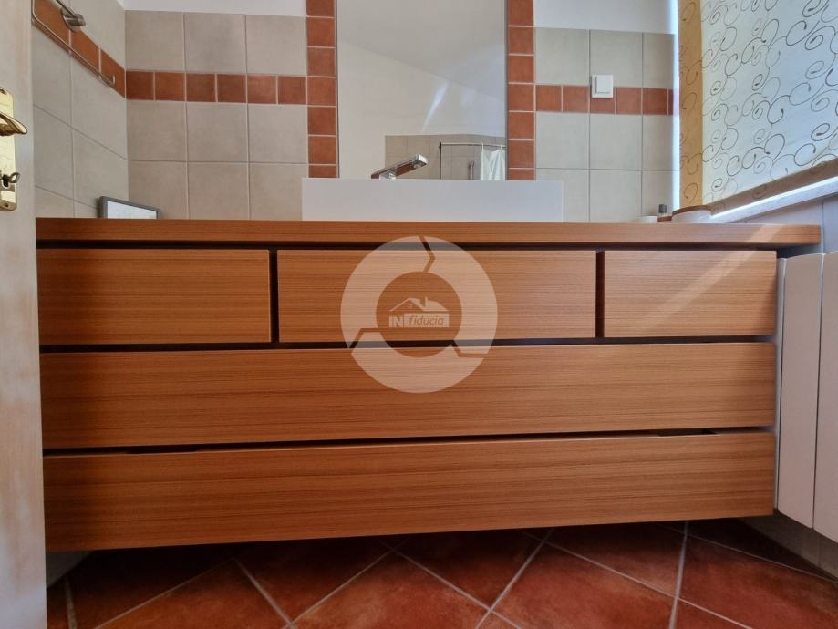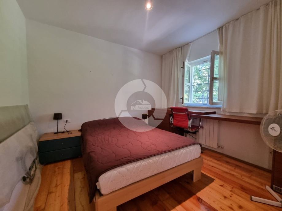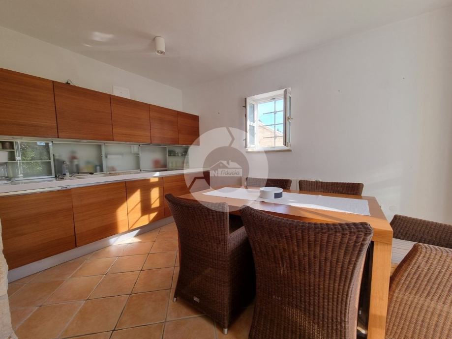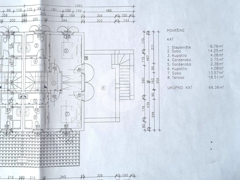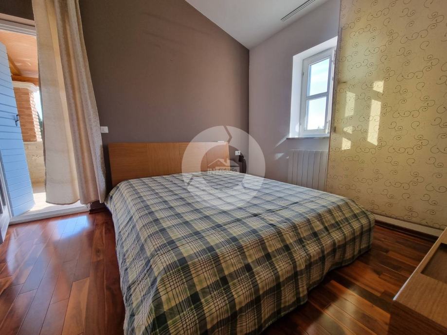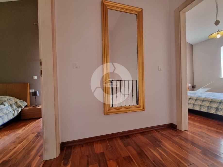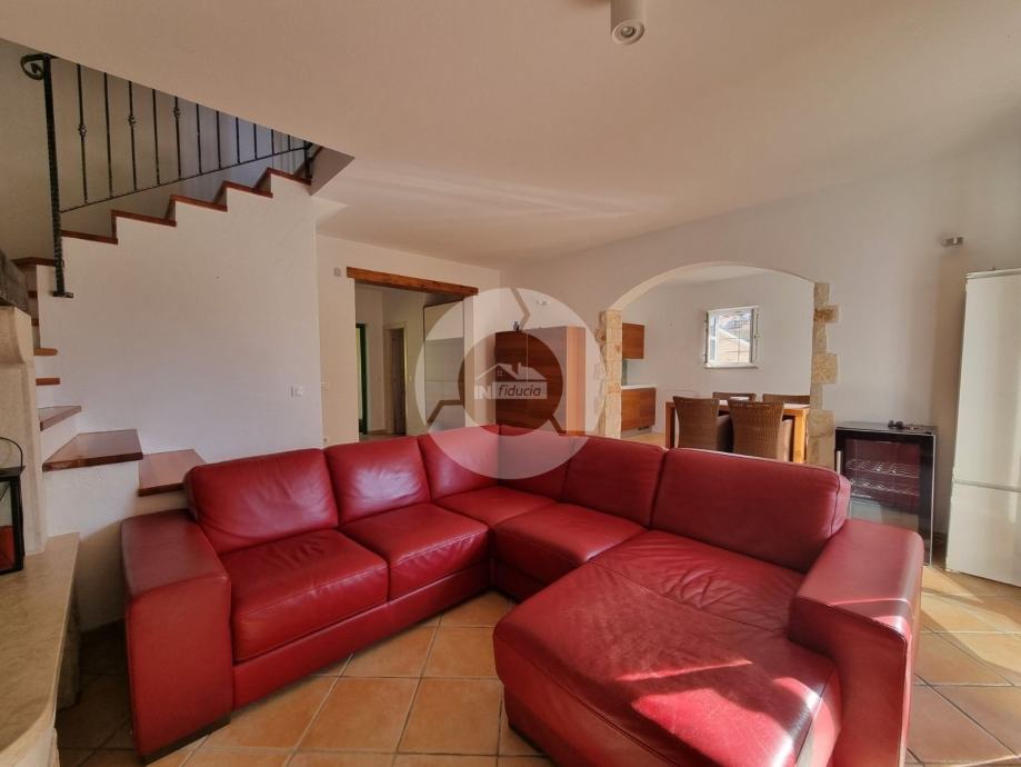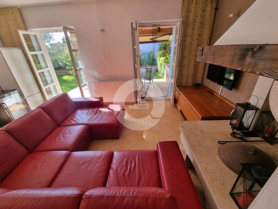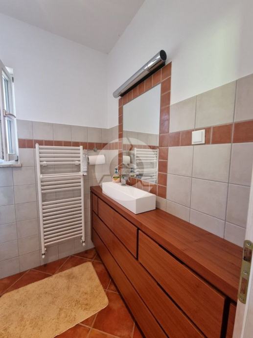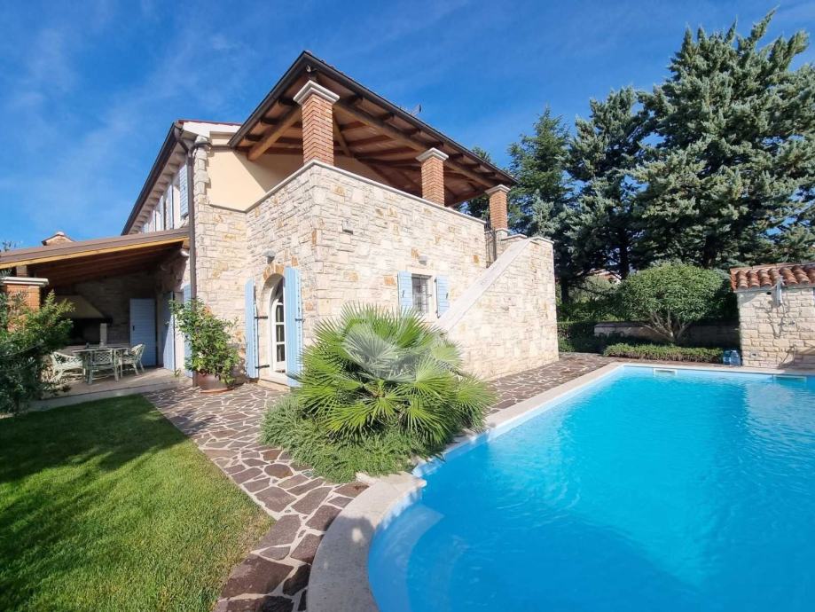 Prekrasna dvojna kuća nalazi se na mirnoj lokaciji nedaleko od Poreča i svega 1 km od mora. Sagrađena je 2006. godine, a vlasnici su je renovirali 2021. godine, te ju kontinuirano održavaju. Kupili su je i koristili isključivo za svoje potrebe, kuća nije nikada iznajmljivana! Ukupno ima 155,55 m2 sa terasama (135 m2 zatvorenog prostora), na parceli od 367 m2. Vrta ima 200 m2. Kuća se sastoji od prizemlja i kata, mediteransko-rustikalnog je stila. U prizemlju se nalaze hodnik, spavaća soba, kupaona, veliki dnevni boravak sa kaminom i kuhinja sa blagovanom. Iz dnevnog boravka i kuhinje izlazi se na natrkivenu terasu gdje se nalazi još jedan kamin i stol za ručavanje, te u vrt. Na katu se nalaze još dvije spavaće sobe svaka sa svojim kupatilom, koje dijele prostranu natkrivenu terasu. Terasa je vanjskim stubištem povezana sa vrtom. Vrt je prekrasno uređen sa mediteranskim biljkama, starom maslinom, uređenim travnjakom, te bazenom od 30 m2. Uz bazen je napravljena mala kamena vrtna kućica od 7 m2 gdje je predviđeno sve za saunu ili može služiti kao spremište. Uz bazen i kućicu se nalazi vanjski tuš. Kuća ima 2 parkirna mjesta. Cijeli vrt je zatvoren zidom, zelenilom ili metalnom ogradom. U stražnjem dijelu kuće, blizu bazena, nalazi se spremište/kotlovnica i ljetna kuhinja. Kuća se prodaje sa namještajem koji je izrađen za cijelu kuću po mjeri. Grijanje je regulirano centralno na lož ulje. Pokretna klima je instalirana samo u jednoj spavaćoj sobi. Instaliran je i alarm te video kamere. Kuća može biti odmah useljiva!