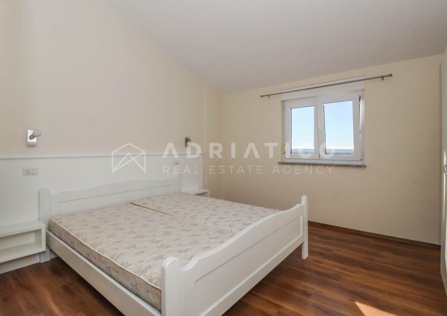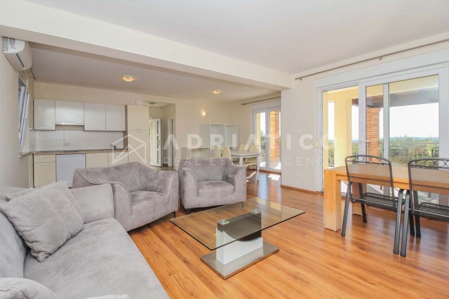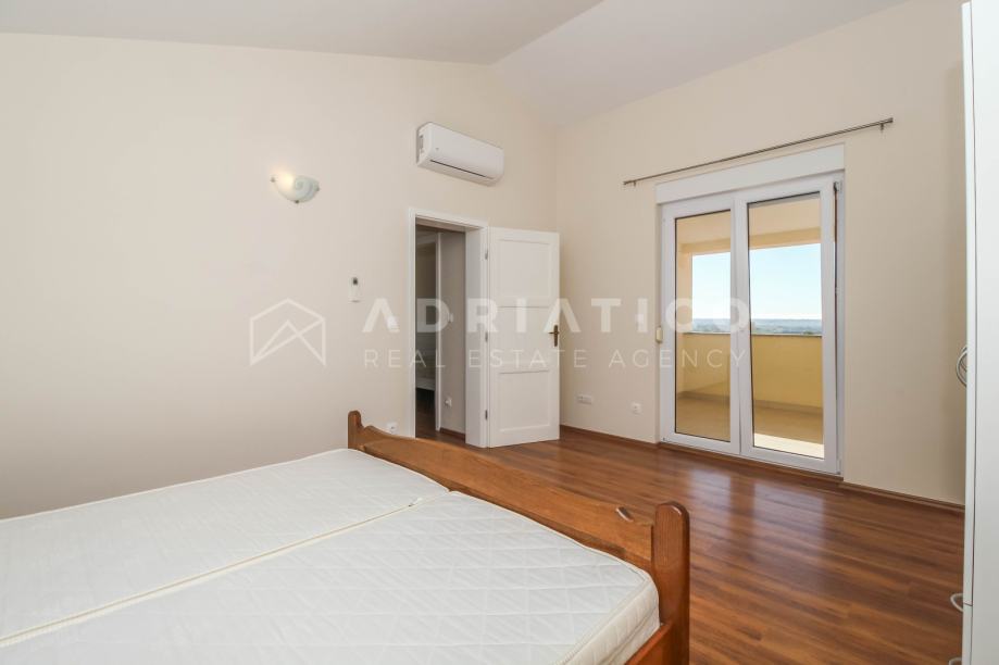 Prostrani interijer s pametnim rasporedom: Prizemlje kuće obuhvaća otvoreni prostor dnevnog boravka koji vodi u kuhinju i blagovaonicu, idealno mjesto za okupljanje i opuštanje. Na ovoj etaži su također kupaonica i ostava. Na katu se nalaze tri udobne spavaće sobe i kupaonica. Na katu je naravno i terasa sa predivnim panoramskim pogledom.