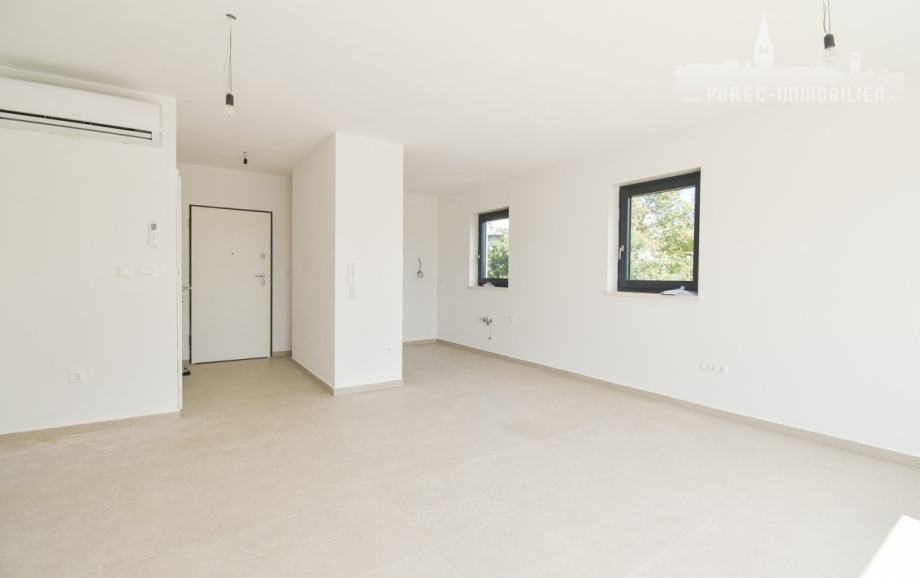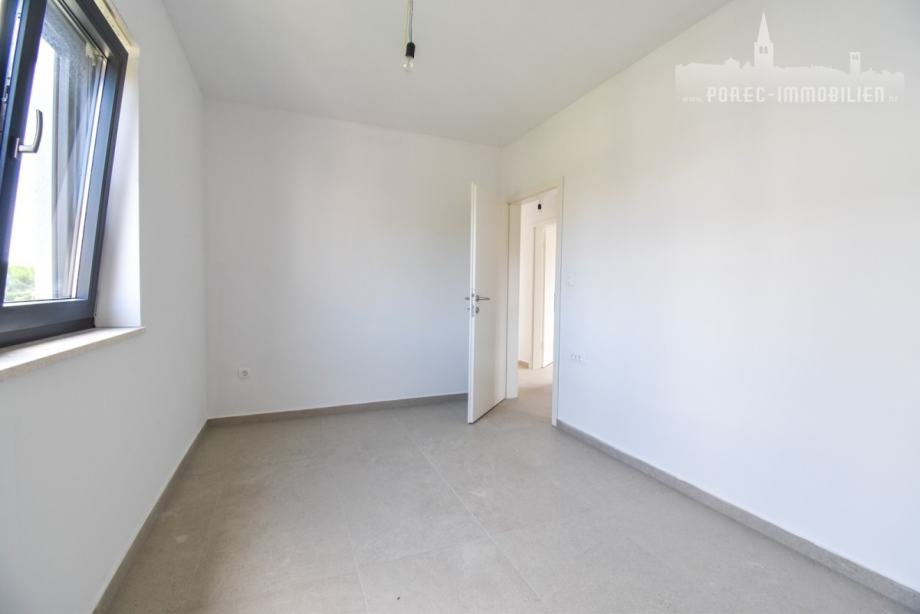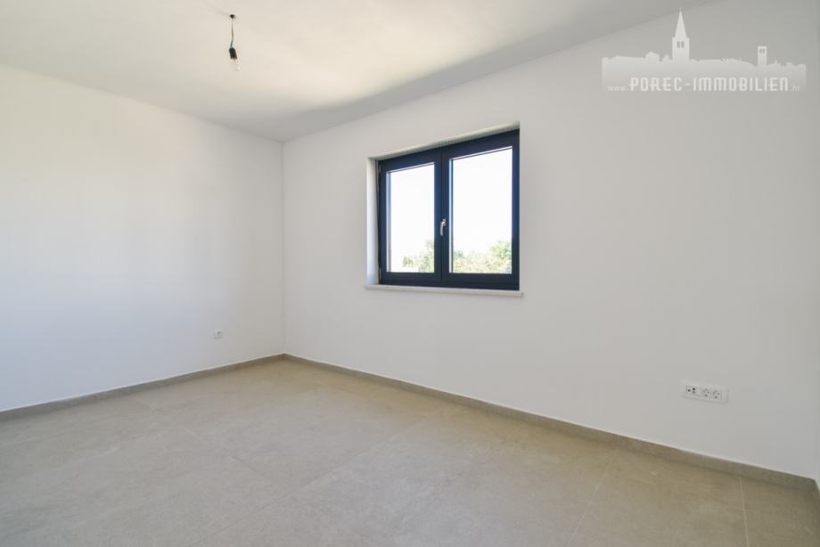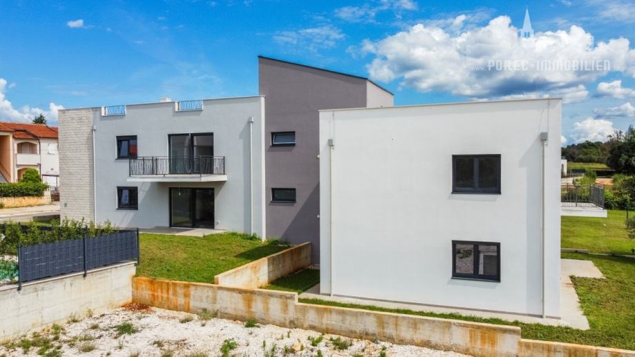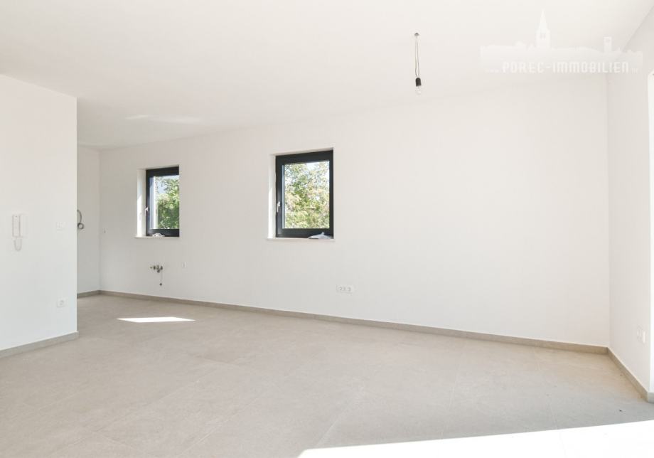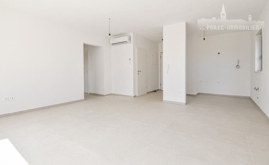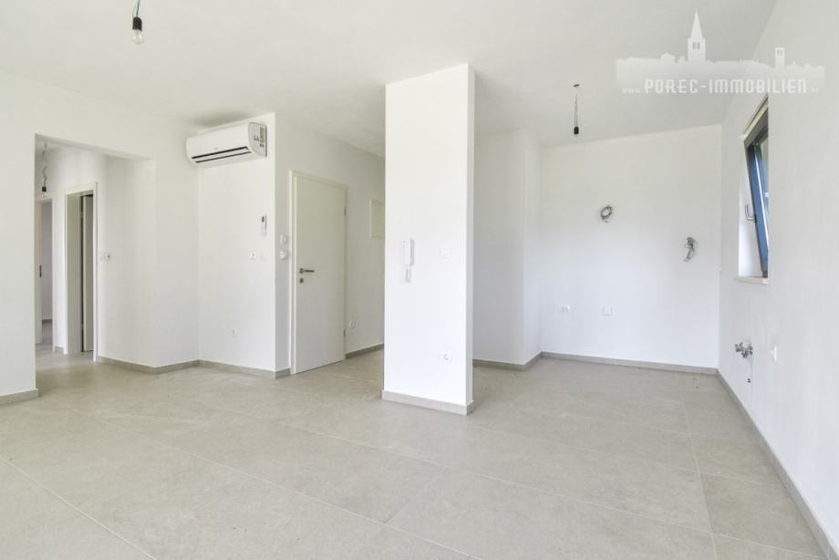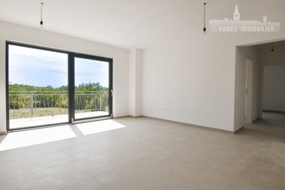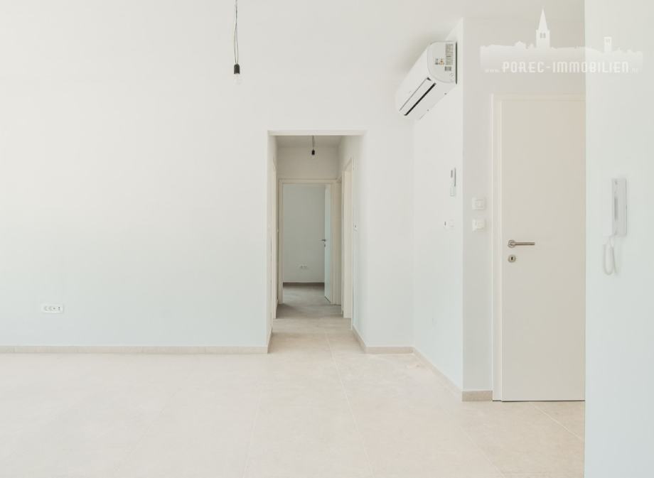 Prodaje se prostrani stan na prvome katu u novogradnji, u malom turističkom mjestu u okolici Poreča. Zgrada moderne arhitekture ima samo 4 stambene jedinice.