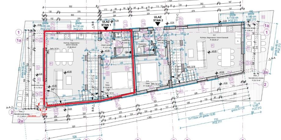 Zatvoreni stambeni dio kuće iznosi 90,30 m2, a dodatnu vrijednost daju dvije natkrivene terase – u prizemlju površine 11,79 m2 te na katu 9,22 m2. Nekretnini pripada i cca 115 m2 dvorišnog/okućnog dijela te jedno parkirno mjesto.