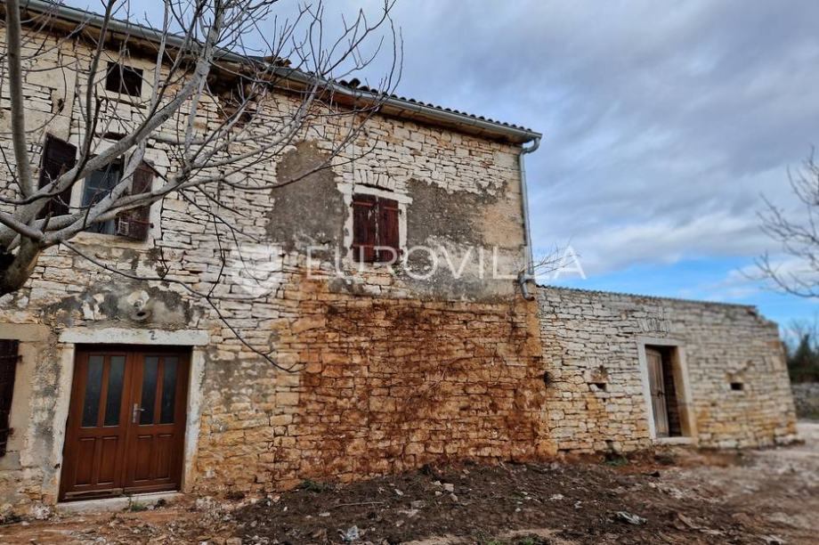 Nedaleko Svetog Lovreča prodaje se kamena kuća u nizu na zemljištu od 3405 m2. Kuća je za obnovu, te je za istu napravljena projektna dokumentacija i za isti ishodovana građevinska dozvola, na kojoj se kuća odvaja od susjedne i postaje samostojeća vila za odmor s bazenom veličine 182 m2 i s balkonom od 16 m2.Kuća je svedena na dvije etaže, prizemlje je predviđeno za dnevni boravak s kuhinjom, toaletom i tehničkom sobom, te jednom spavaćom sobom s vlastitom kupaonicom. Unutarnjim stepenicama se penjemo na kat s dvije en Suit spavaće sobe od koji jedna ima balkon od 15,80 m2 iz kojeg se pruža pogled na krajolik.