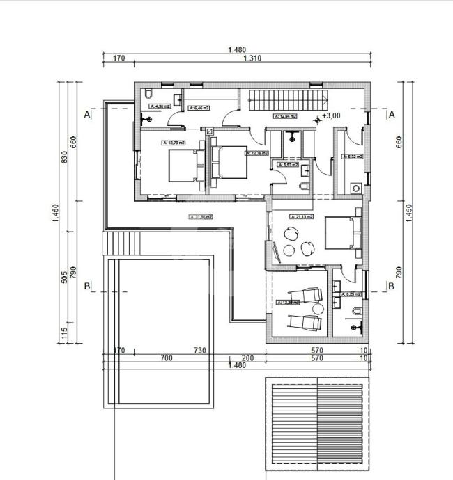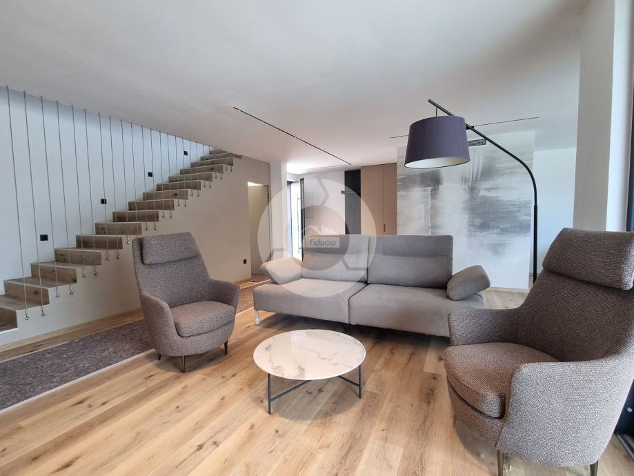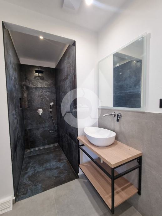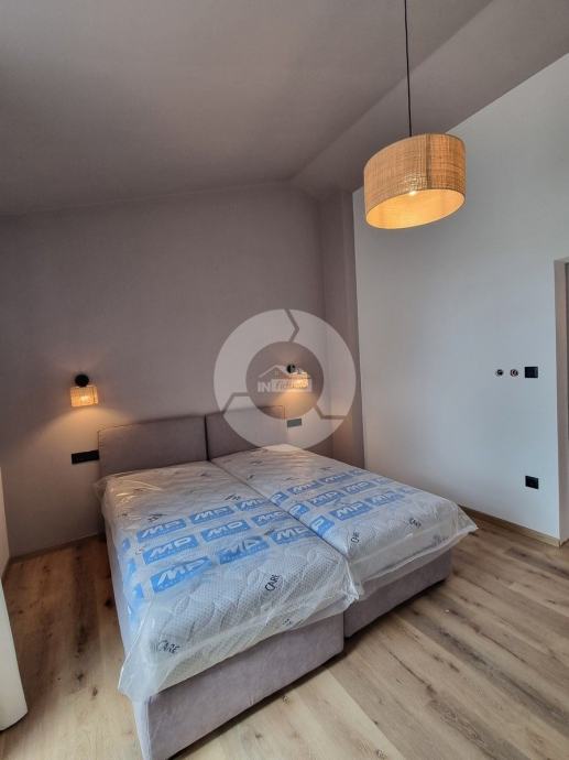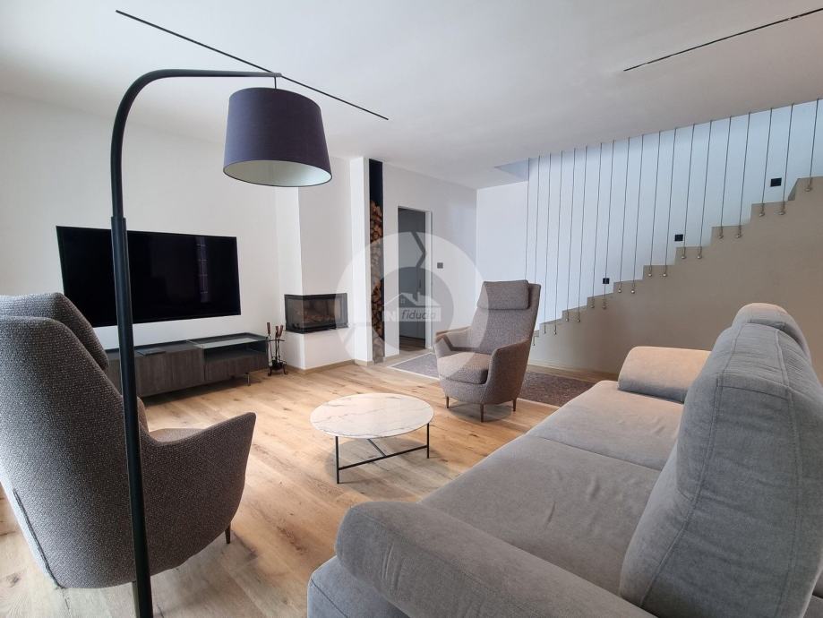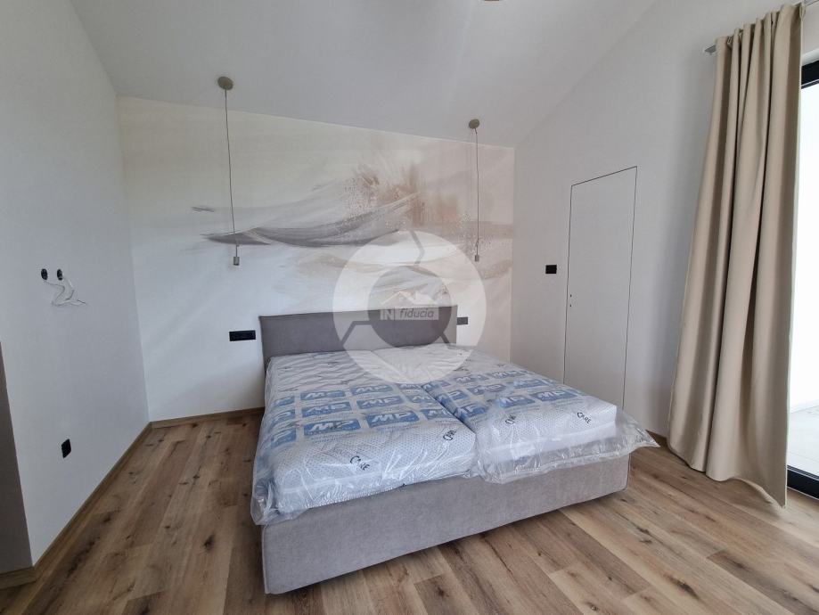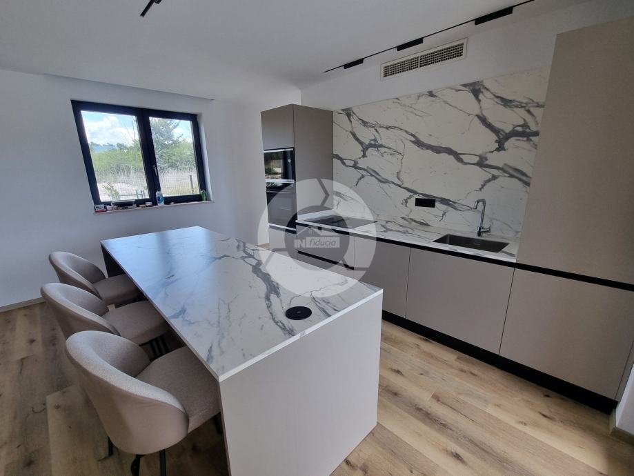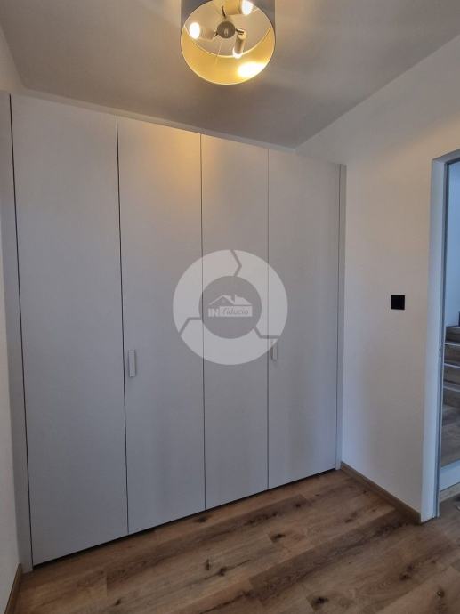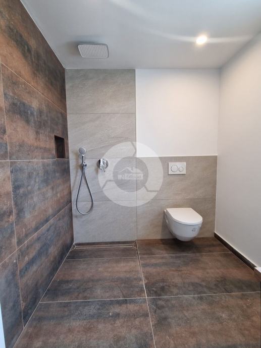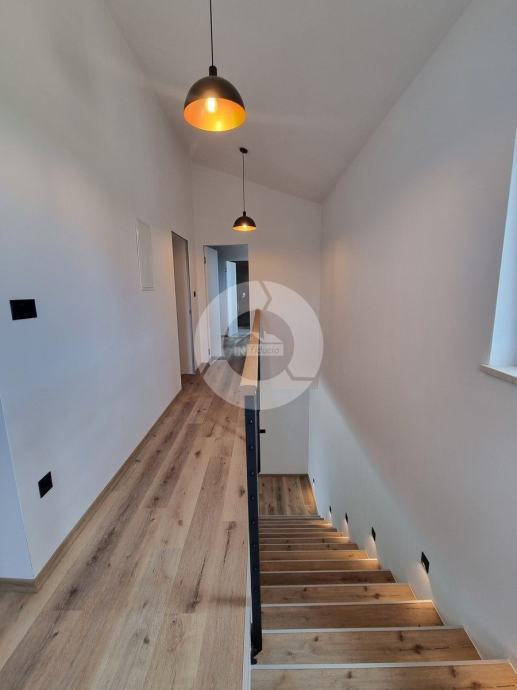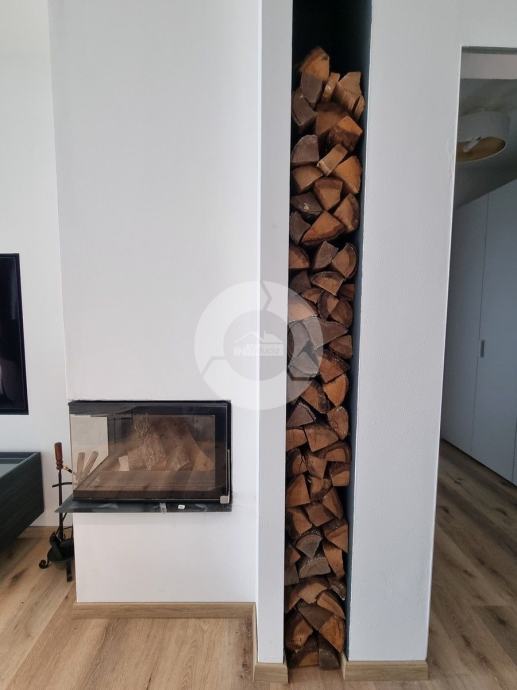 Ova lijepa vila u novogradnji, smjestila se na rubu istarskog sela nedaleko od Višnjana (7 km). Lokacija je vrlo mirna i okružena je prirodom, što garantira maksimalnu privatnost. Planirani dovršetak kuće do useljenja je ljeto 2025. godine. Sastoji se od tri etaže: polu suteren, prizemlje i prvi kat. U polu suterenu se nalazi garaža, strojarnica bazena, tehnička soba, wc i jedan prostor koji je predviđen za biljar, prostor za druženje no može se prenamijeniti i u wellness prostor za saunu ili fitness. Unutarnjim stepenicama se odlazi u prizemlje. U prizemlju se nalazi ulazni hodnik, dnevni boravak, blagovaona, kuhinja, spavaće soba sa vlastitom kupaonom, te wc za goste. Iz svih prostrorija se može izaći na prostranu terasu od 34,03 m2 i vrt. Na katu se nalaze još tri spavaće sobe sa vlastitim kupaonama. Jedna soba ima i loggiju u koju se može smjestiti jacuzzi za dvije osobe, a sve sobe imaju izlazak i na prostrani balkon od 31,86 m2. u vrtu se nalaze parkirna mjesta, ljetna kuhinja od 23,36 m2 sa wc-om, te bazen od 40 m2. Lokacija je idealna za one koji žele biti dalje od gradskih gužvi i buke, a opet u blizini sadražaja mjesta (7 km).